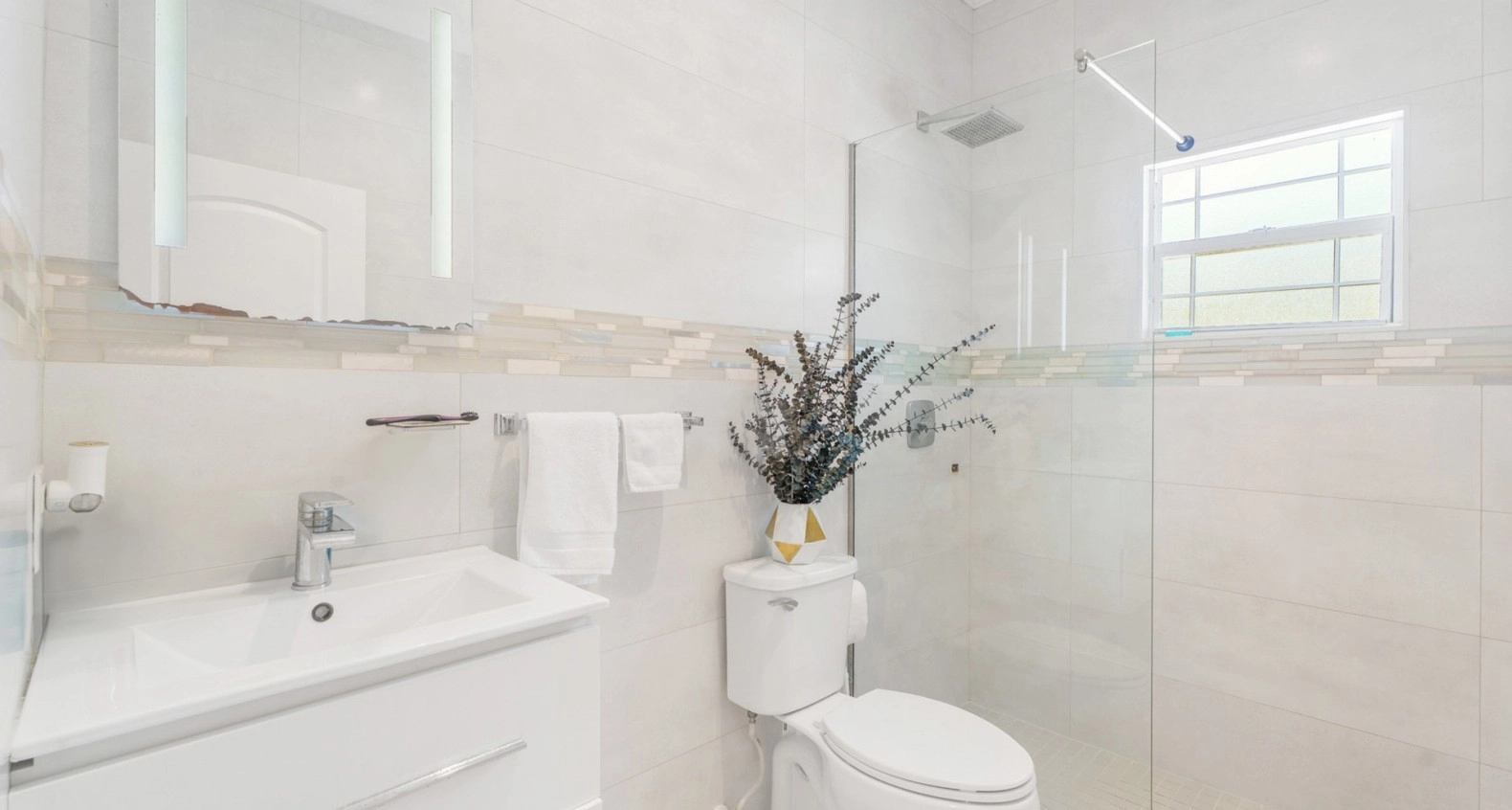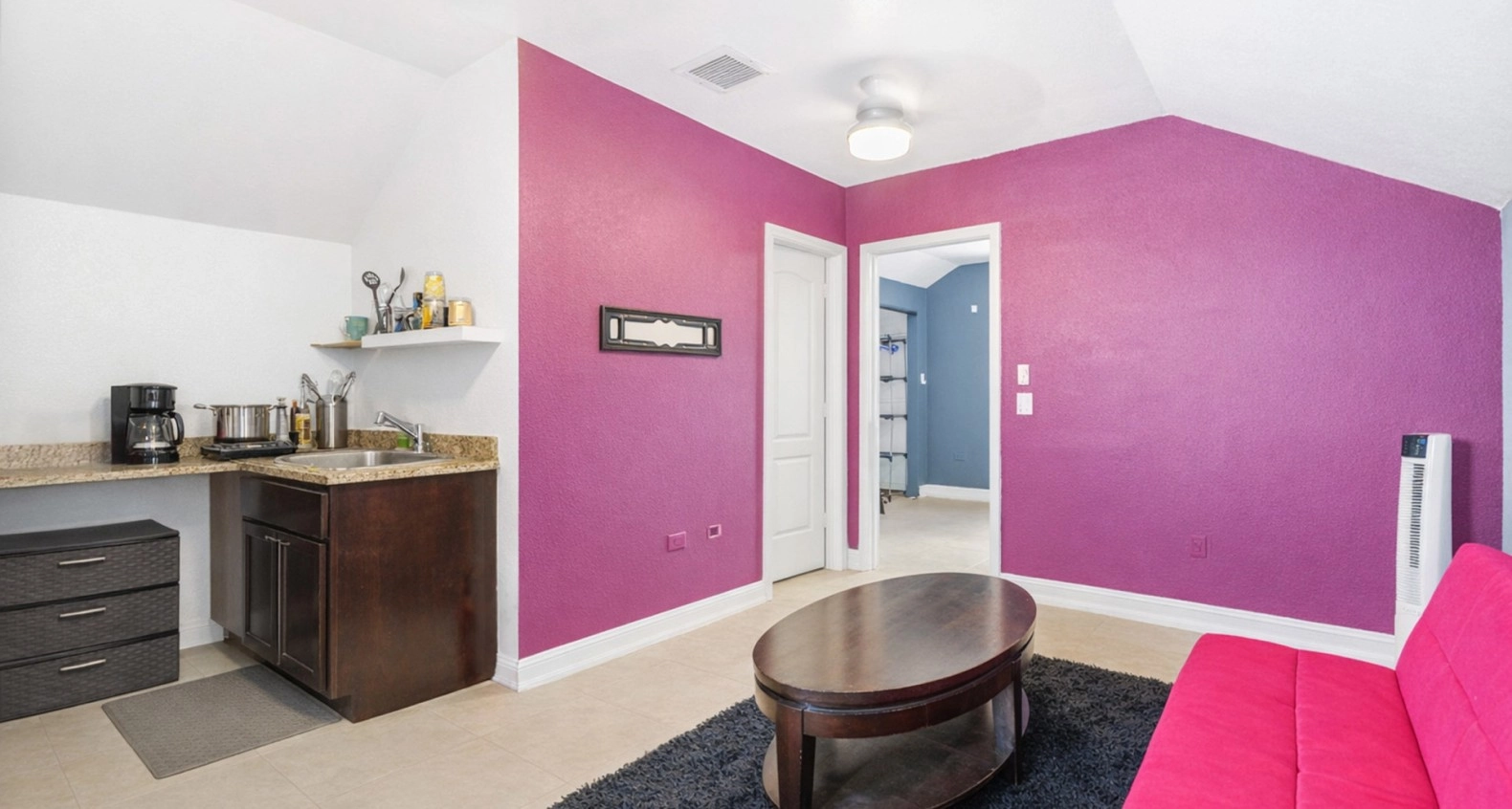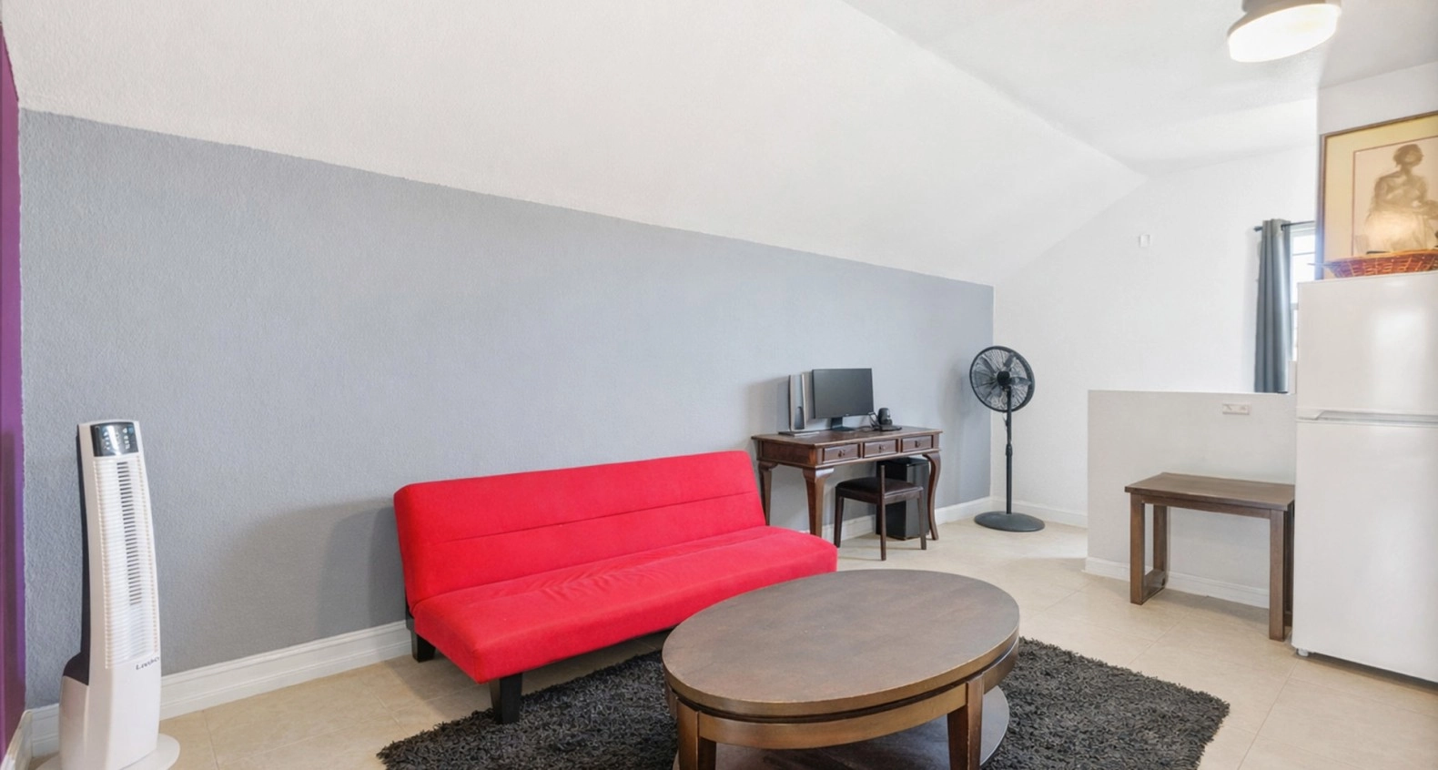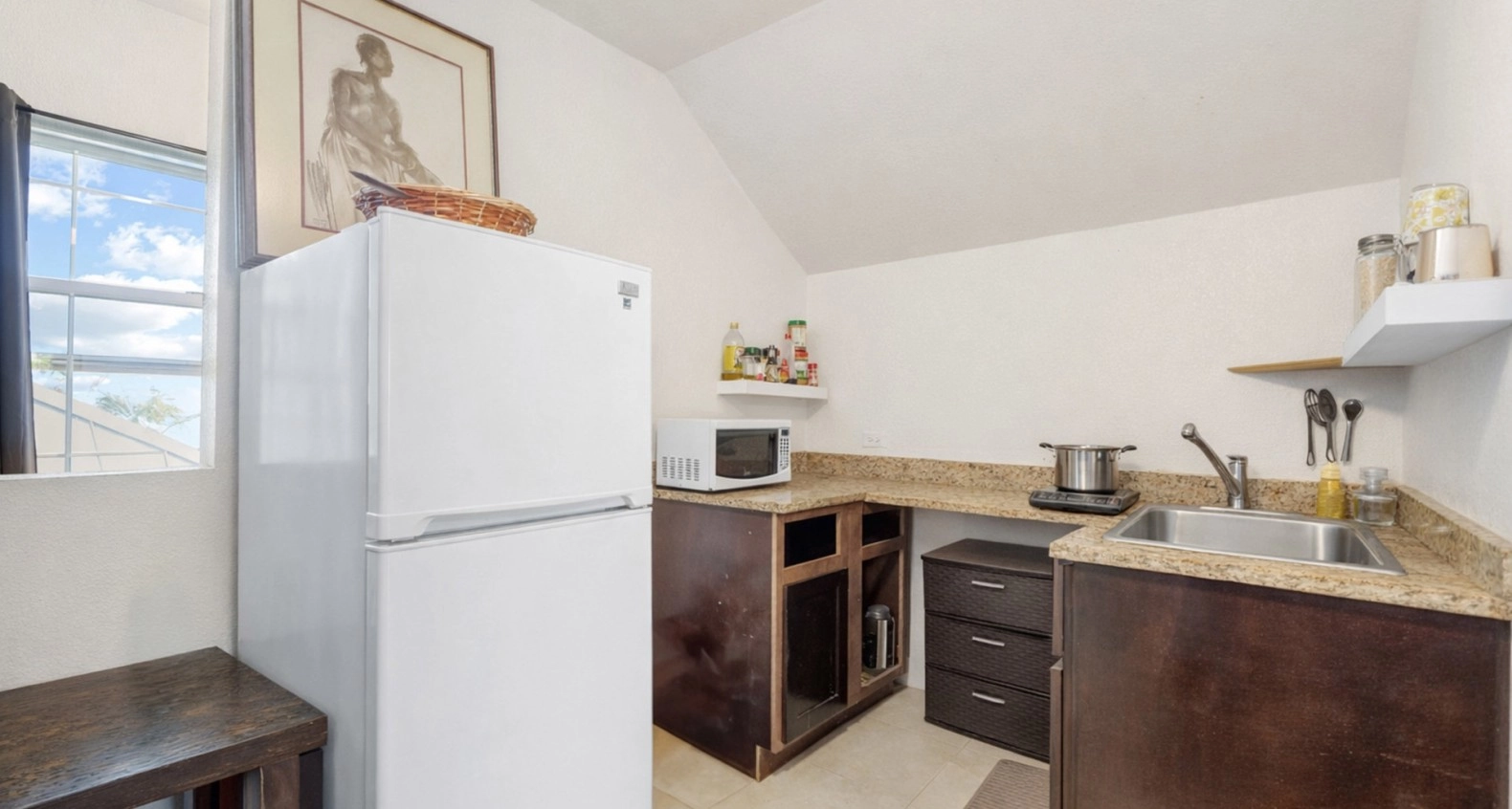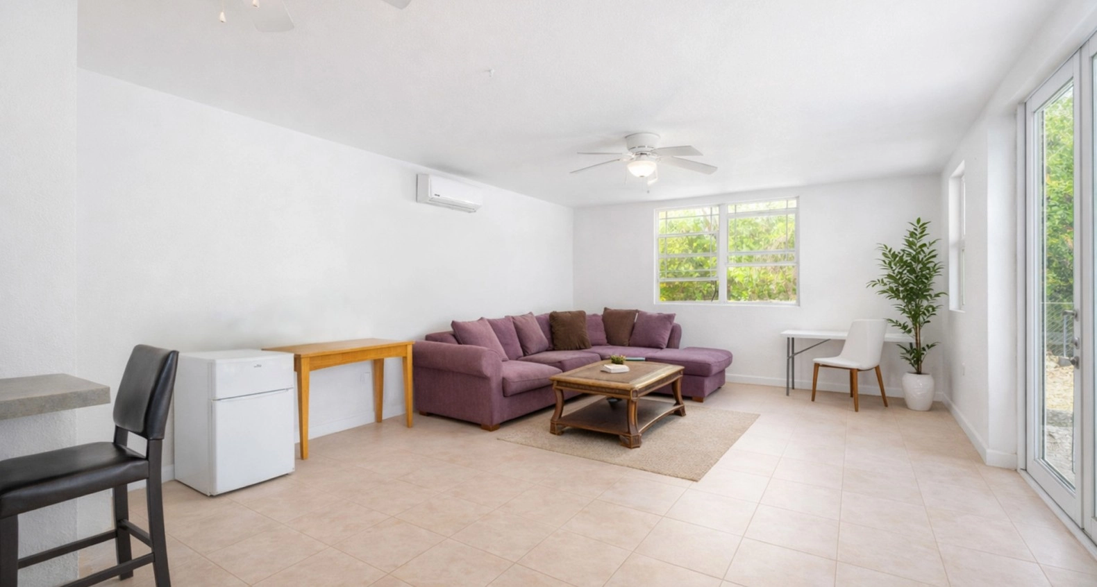 Designed for comfortable island living, the main home features generous living areas with soaring 12-foot ceilings, creating an airy, light-filled atmosphere throughout. The well-appointed kitchen with solid wood cabinetry flows seamlessly into the dining and living spaces, making it perfect for both everyday living and entertaining.