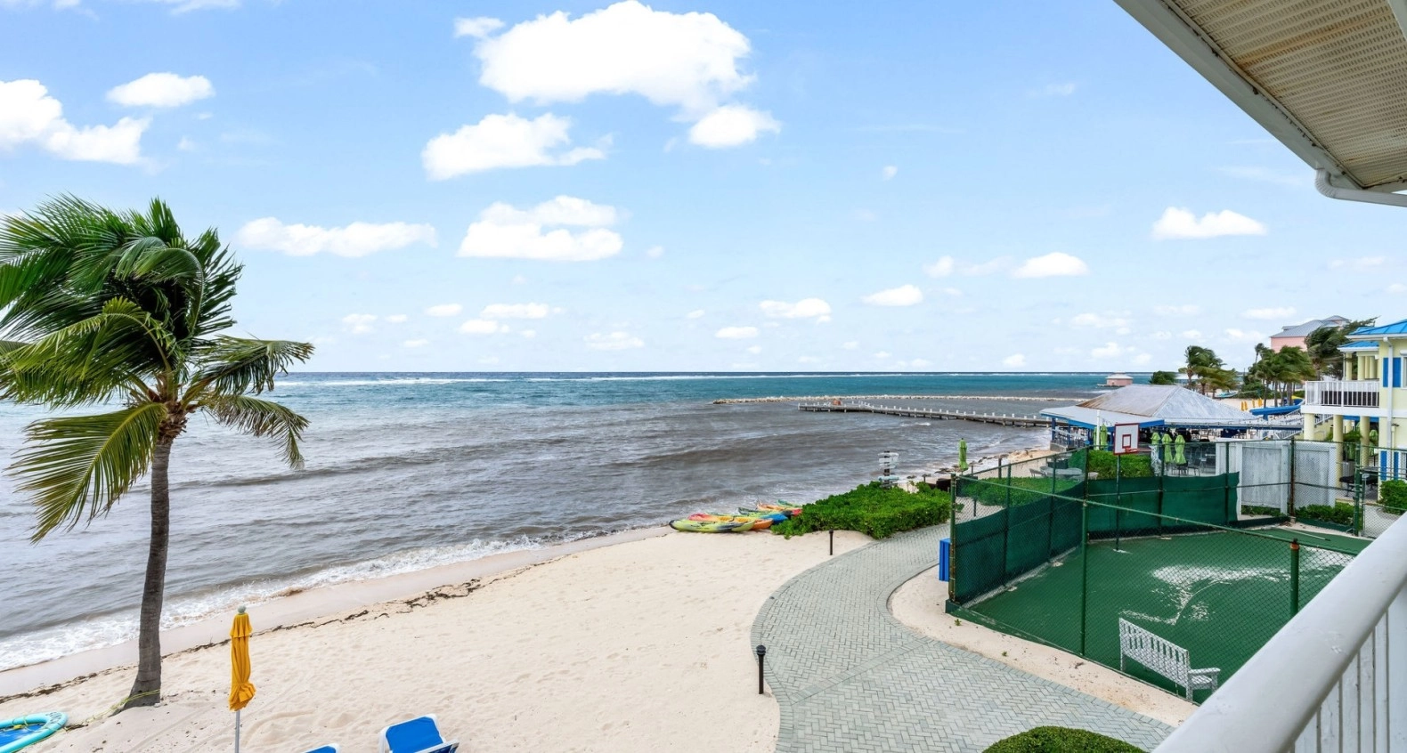This beautiful two bedroom oceanfront condo is the perfect location in a full service resort with tennis court, security, pools, hot tubs, lots of parking, restaurants and bars on site, 24 hour front desk service, fitness center, water sports, concierge, spa. Spacious and bright, open concept, it is located in tranquil East End and has all the resort amenities at your fingertips. Inside offers two large bedrooms and 2 bathrooms with a walk-in closet in the master. Kitchen has a modern feel with stainless steel appliances, granite counter top, and eat in breakfast bar. Another great feature to this property's long list of attributes is that the living room has two murphy-beds hidden in the cabinetry. Plenty of space for the whole family to enjoy making memories in the sunshine. This can be your home long term or as a short term investment property. With a fully operational management service, this establishment makes it easy to own a hassle-free piece of paradise!