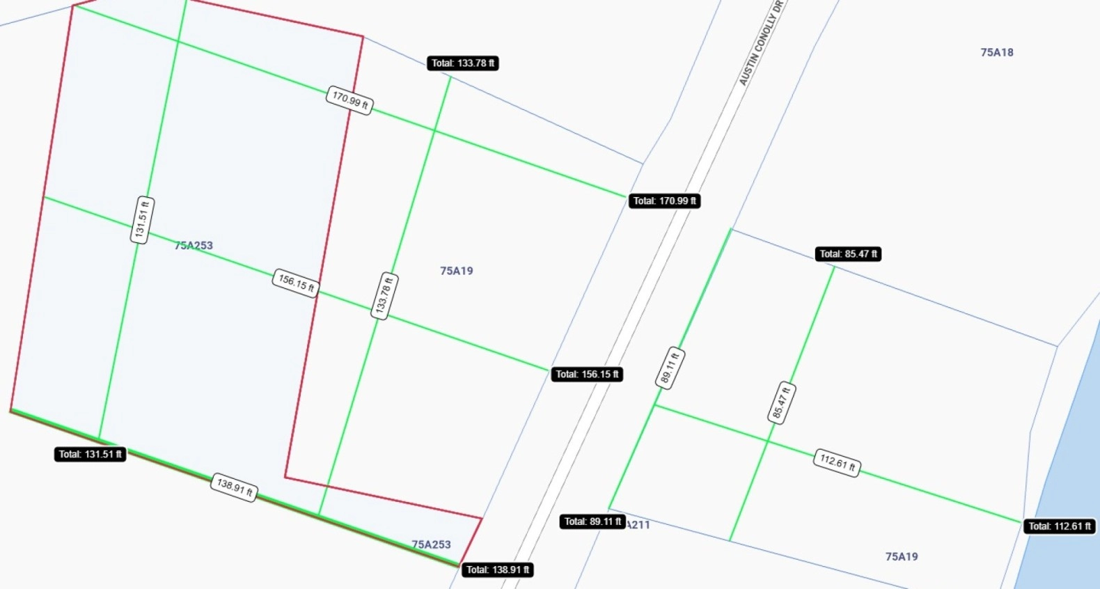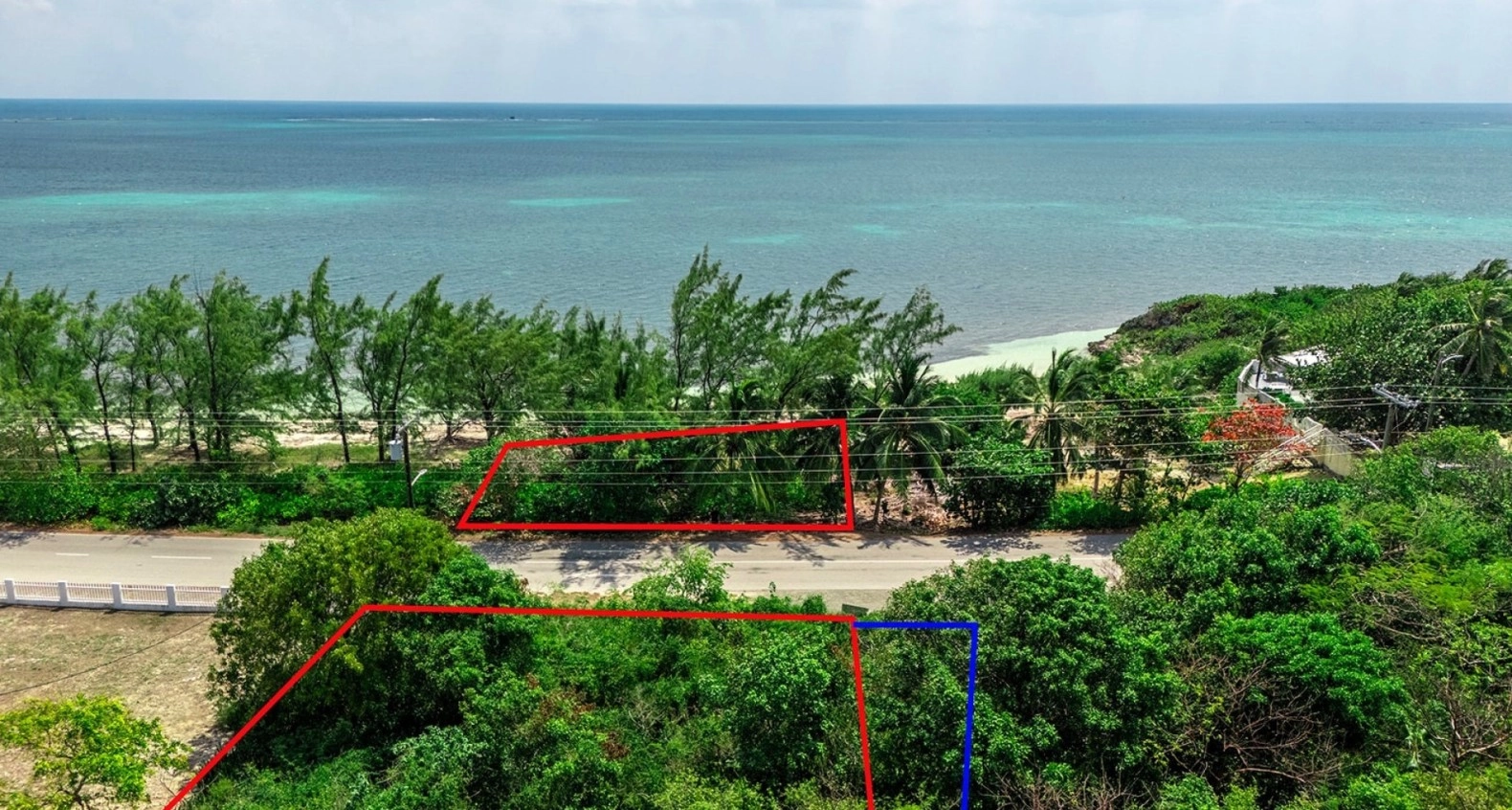 The inland portion of the properties, located above Austin Conolly Drive, offers a generous development area, measuring approximately 135 feet in width and extending up to 173 feet in depth, totalling roughly 0.46 acres. On the oceanfront side, the parcel reaches up to 116 feet in depth and widens to 88 feet at its broadest point, offering more than 0.2 acres of direct beachfront land.