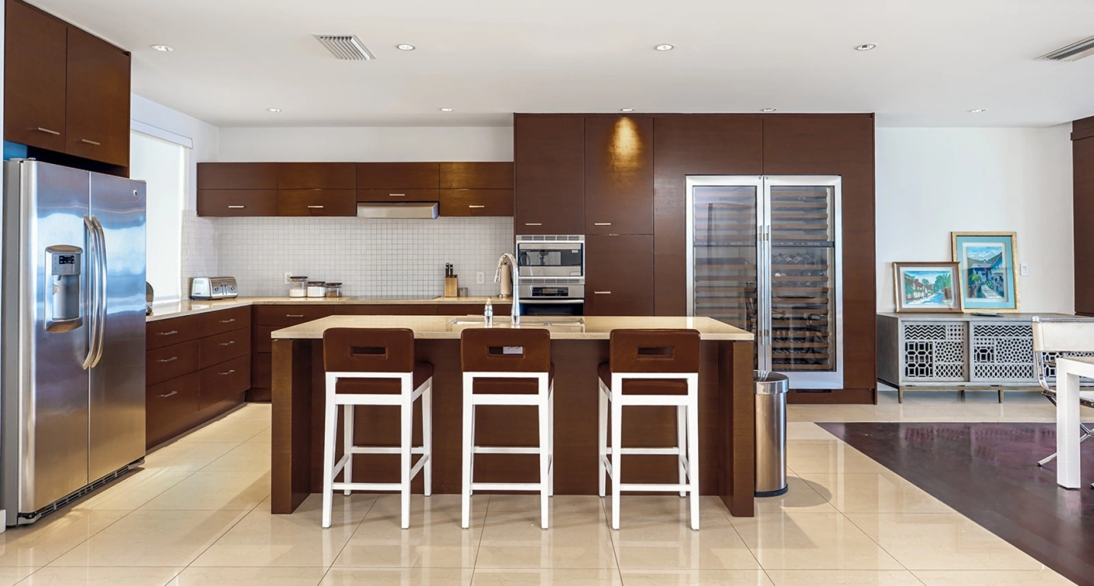 Two large built-in Sub Zero wine fridges with 300-bottle capacity