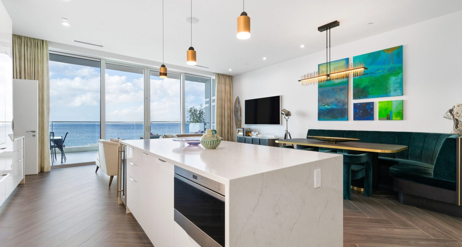 Step inside to discover an open-concept layout flooded with natural light, featuring high ceilings, premium finishes, and designer touches throughout. The gourmet kitchen is a chef’s dream, equipped with top-of-the-line appliances, custom cabinetry, and a spacious island ideal for entertaining. The expansive living and dining areas flow effortlessly onto a private terrace, where you can enjoy serene views of the crystal blue waters of the Caribbean Sea.