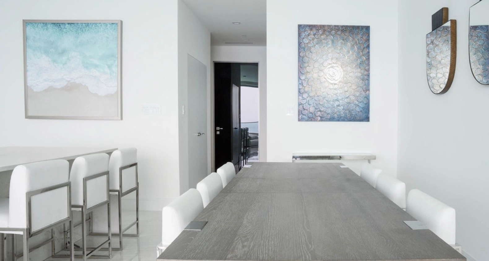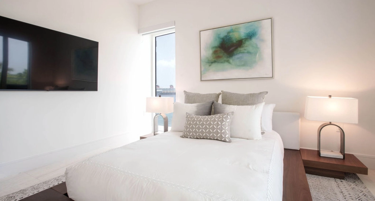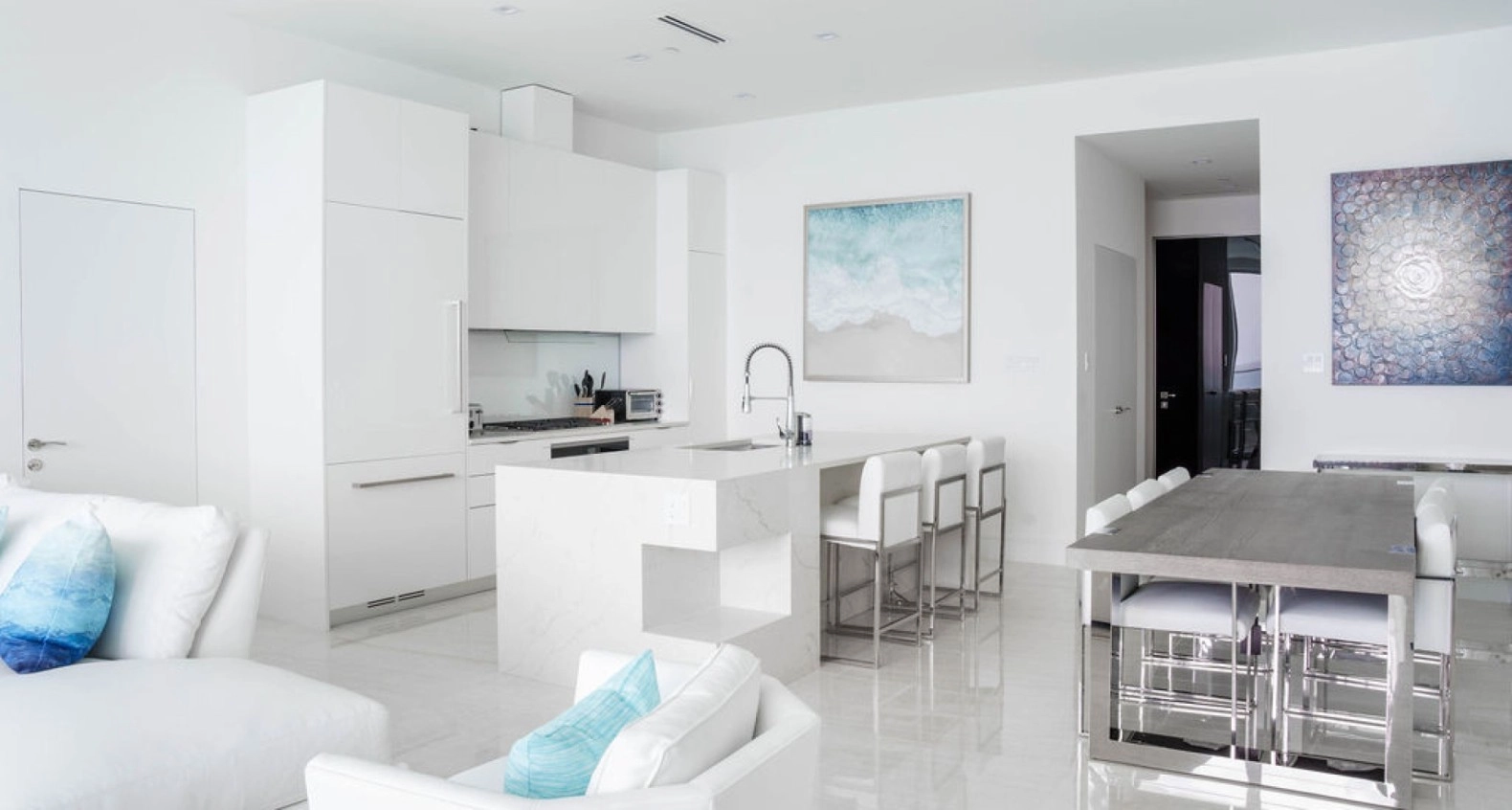 This modern end unit is fully furnished and decorated in a contemporary, airy, beach inspired style. This bright white space is adorned with beautiful abstract artwork decorating its walls throughout. There are 2 spacious bedrooms, both with king beds and ensuite bathrooms, as well as one half bath. Owners can enjoy the open floor concept throughout, a full-sized kitchen, and living area featuring a large screen TV, and private balcony overlooking the Caribbean Sea.