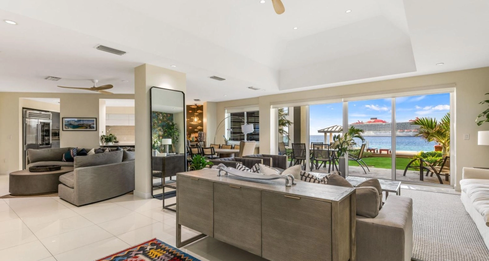 The heart of the home is the newly installed kitchen, showcasing premium appliances, custom cabinetry, and sleek finishes. The adjoining living and dining areas have also been elevated with tasteful décor and a fresh, contemporary layout that flows naturally out to the private seaside terrace. From here, you can take in uninterrupted views of the Caribbean Sea, swaying palms, and Cayman’s unforgettable sunsets.