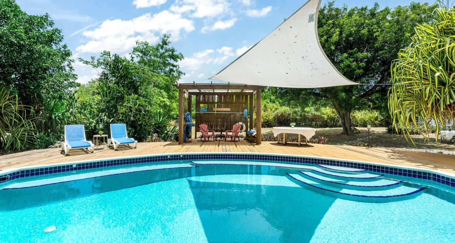 Diverse and extremely flexible layout for this splendid money maker! Fully furnished and quite well!! On over one half acre with a lovely fresh water pool, 100 feet deep well, cistern for gathering natural rainfall for your use for irrigation, pool, and /or toilets and sinks. This ample supply of water, combined with the solar panels on the roof, helps you live off the grid with ease while generating rental income. The ground floor of the main house spills across the large side of the property, offering flexibility in how you divide it/share it.