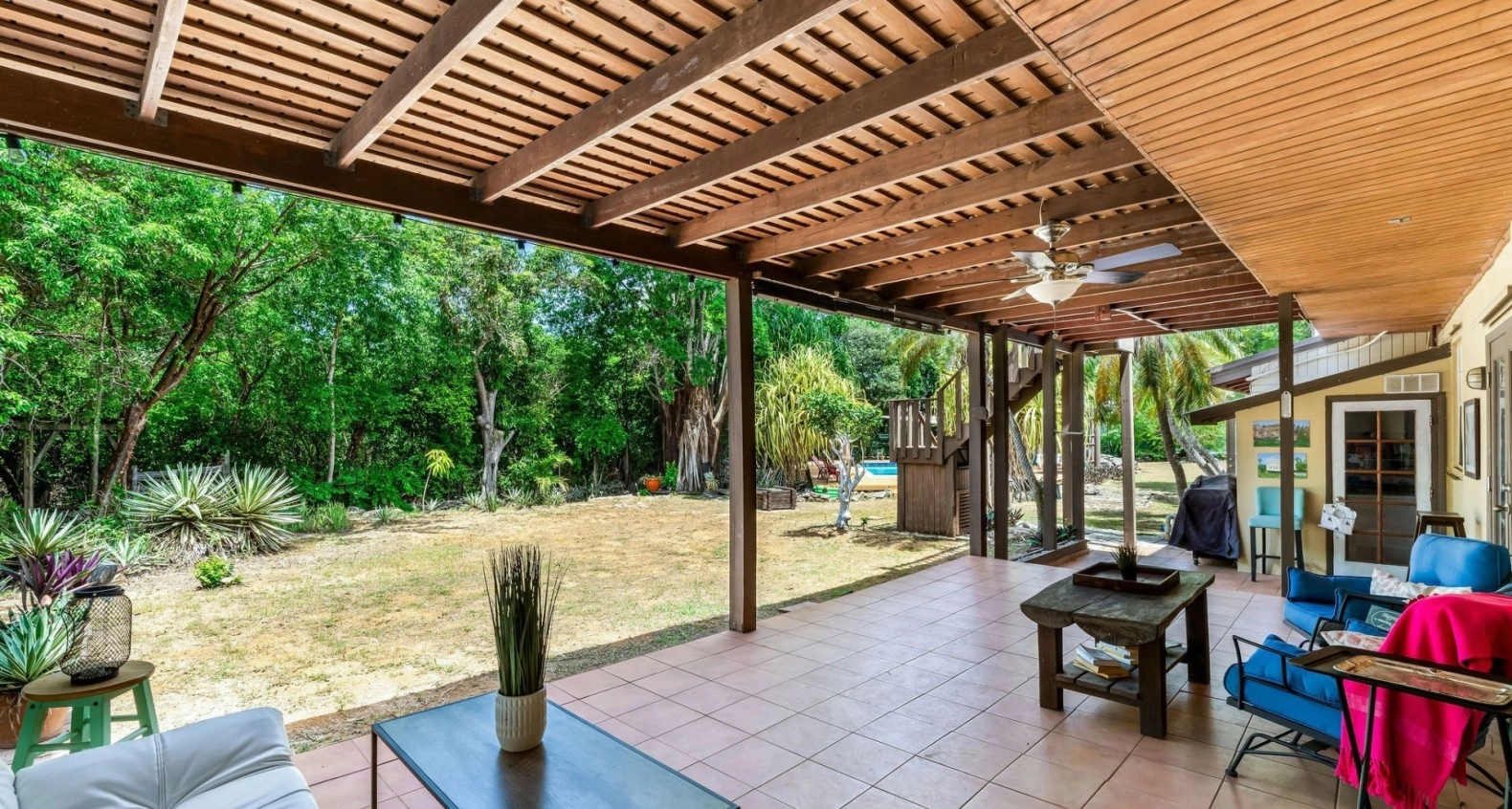 As it is, the property is now in perfect harmony with the mature fruit-bearing trees, flowering cacti, banyan trees, fresh water swimming pool, and lovely bird life. Loads of elbow room is always nice... better than a condo, for sure!