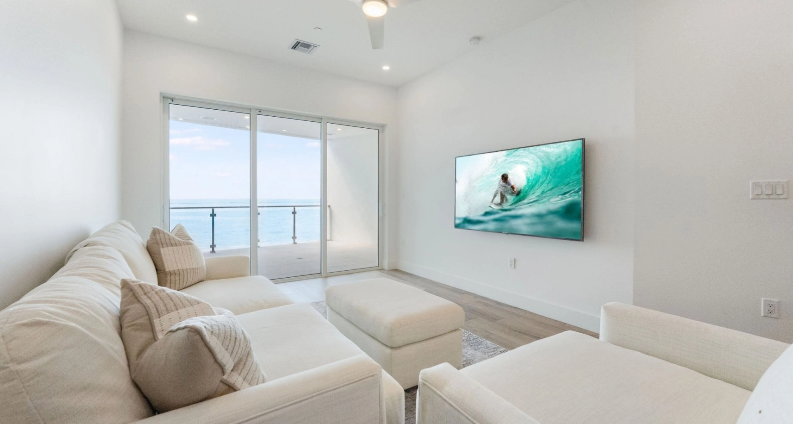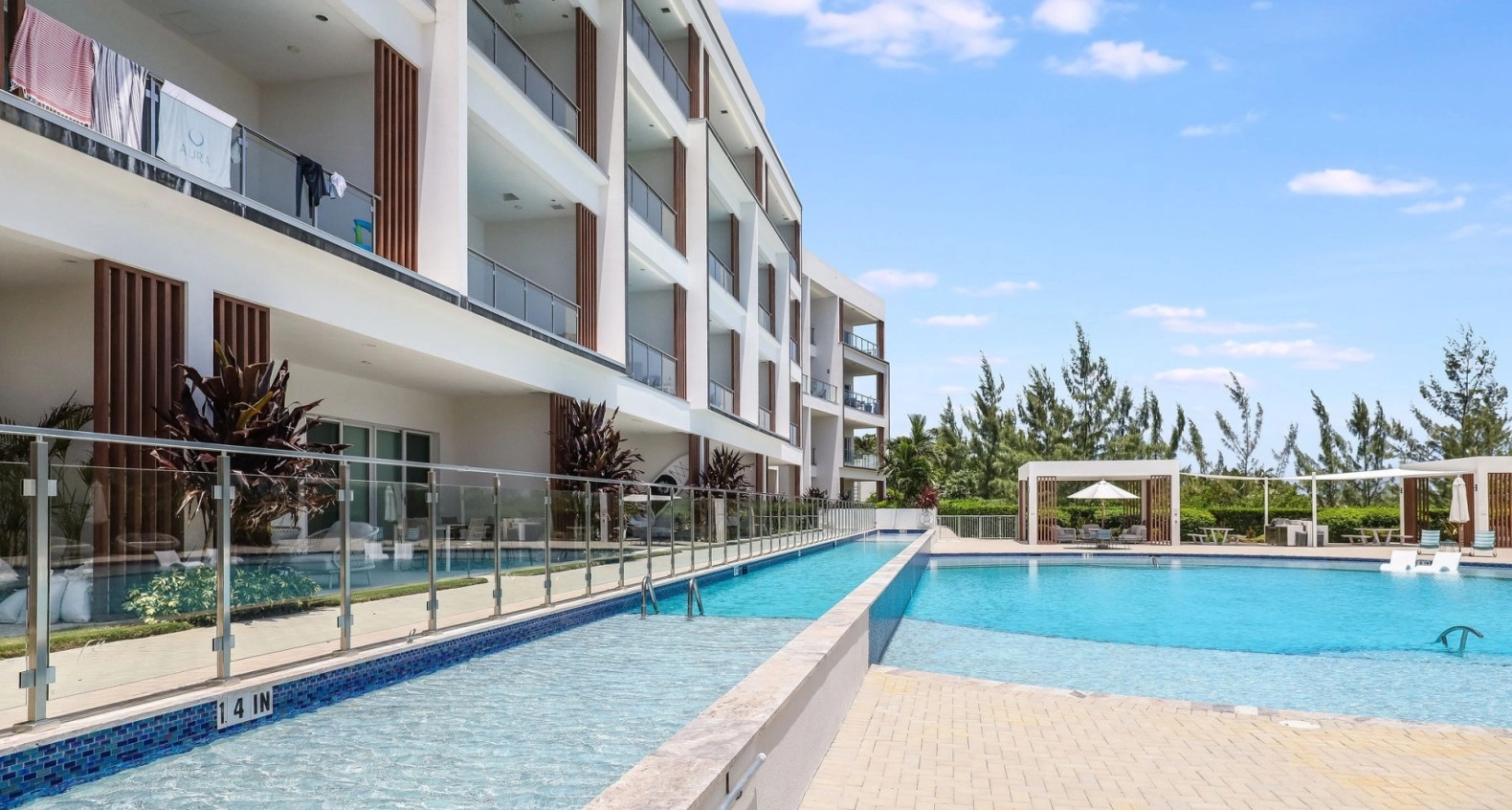 EXCEPTIONAL OPPORTUNITY! Uninhabited and pristine!! This residence presents an opulent, newly constructed lifestyle in the scenic South Sound region. It boasts a breathtaking fourth floor, fully furnished 2-bedroom, 2.5-bath condominium with remarkable ocean vistas overlooking the bay. The modern design is elegantly adorned, ensuring a seamless move-in experience. The complex features outstanding amenities including a 60-foot circular pool, a 75-foot lap pool, verdant gardens, a private cove, outdoor barbecue facilities, a gym and kitchen area, as well as a children's play area. Relish the soothing ocean breezes and the charm of this enchanting locale.