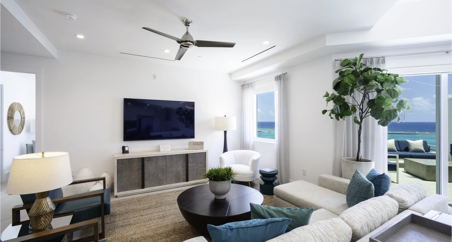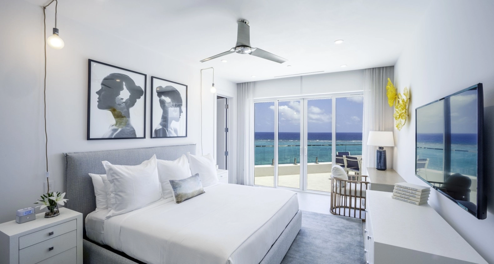 An exceptional Penthose that boasts an expansive terrace with unique panoramic views of the Caribbean Sea and sunsets. Incredible beachfront Master Bedroom, Living Room, Dining Room all looking out to the Caribbean Sea. Second and third bedroom overlooks the waterways of Rum Point and North Sound. High ceilings throughout with vaulted areas, an abundance of space, natural light, and luxury. Highest quality finishes and fixtures. Fully furnished, including everything. Rum Point Club Resort is truly wonderful with numerous facilities, amenities, and services, you want for nothing. Dine inside or out, room service, gym, spa, concierge, garage, cabana, dock, secluded beach, and the list goes on. Live, rent, use and love!