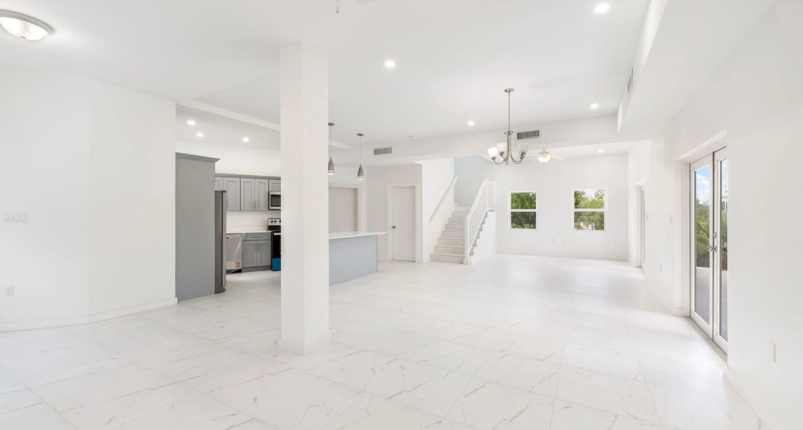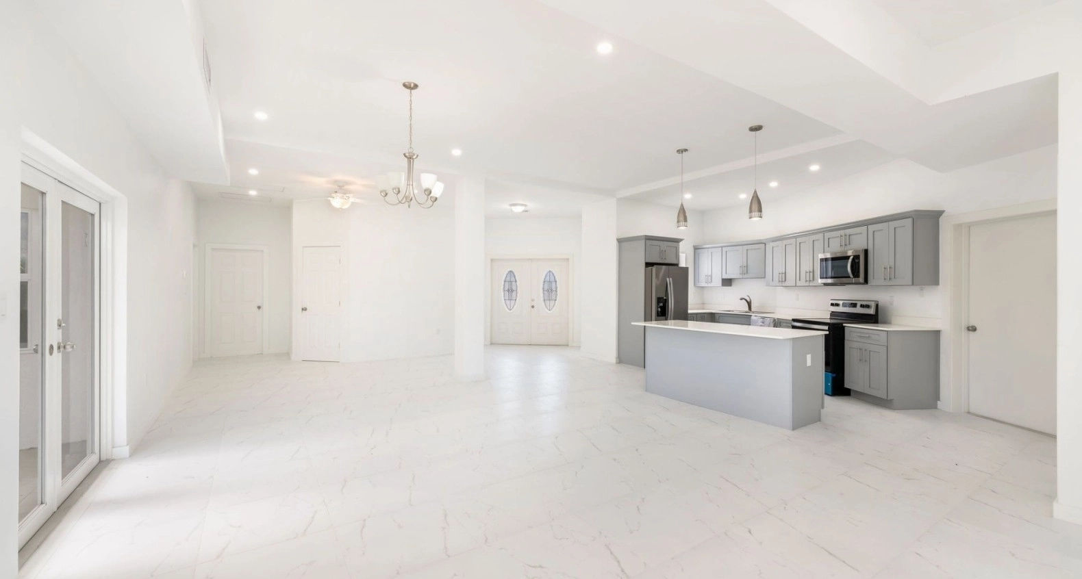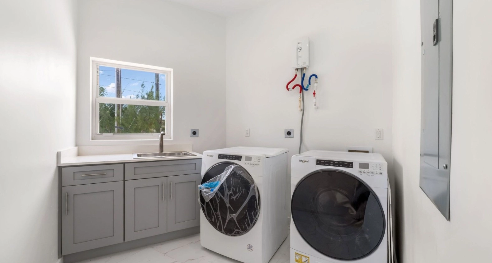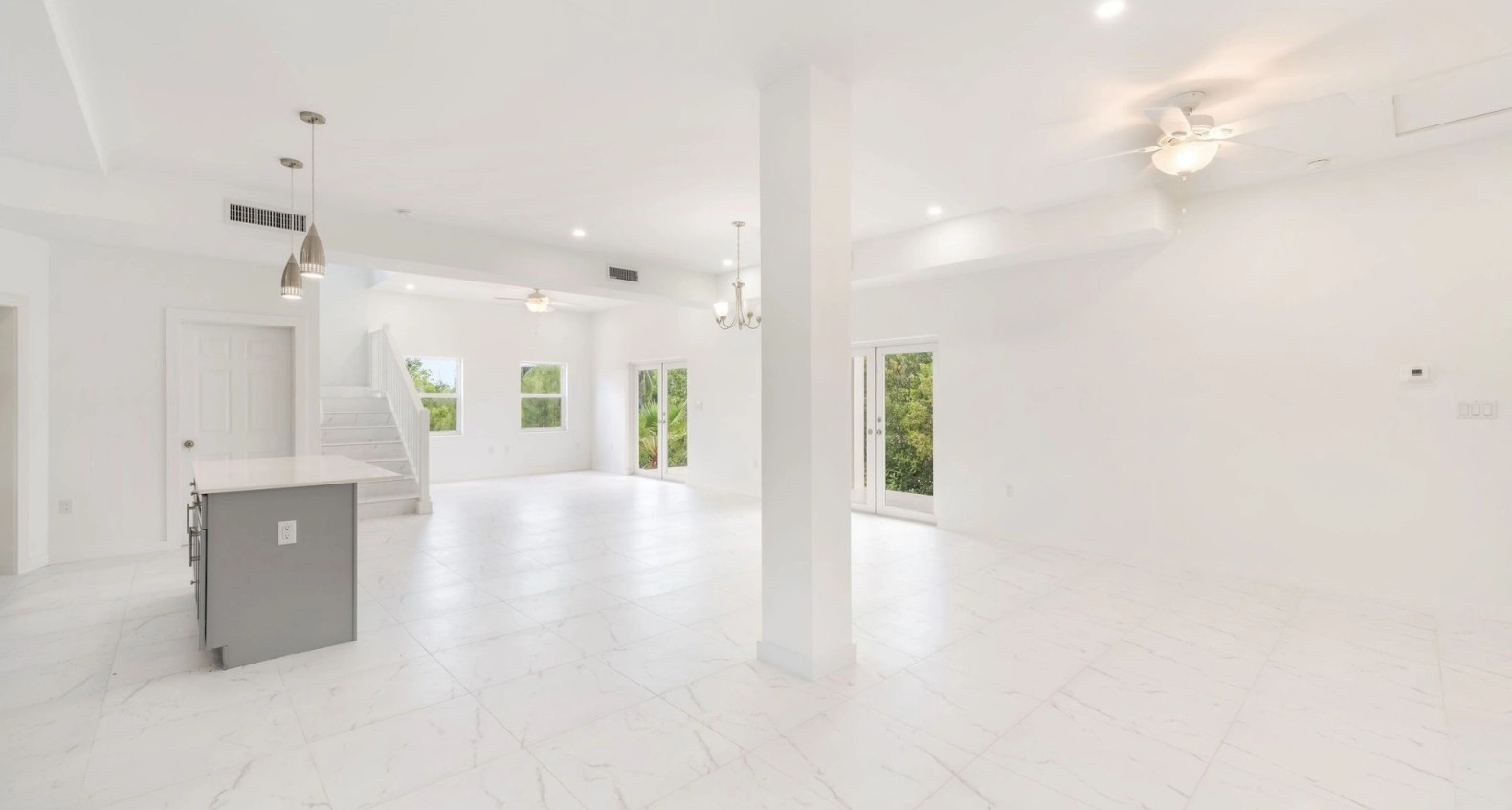 Beautiful brand new 4-bedroom, Light and spanking new! Four lovely bedrooms with a primary ground-floor suite. The garage off the kitchen is super handy, and the ample laundry room offers loads of storage. Covered porches as well as open air sunlight-filled patios flanking the living areas as well as bedrooms in this coastal oasis! New dock off to the side, perfect for securing your vessel. Let the kids go fishing from here, or put your party chairs and table here and enjoy the magnificent sunsets right down the waterway. The perfect spot to capture those unforgettable sunset moments in Cayman!