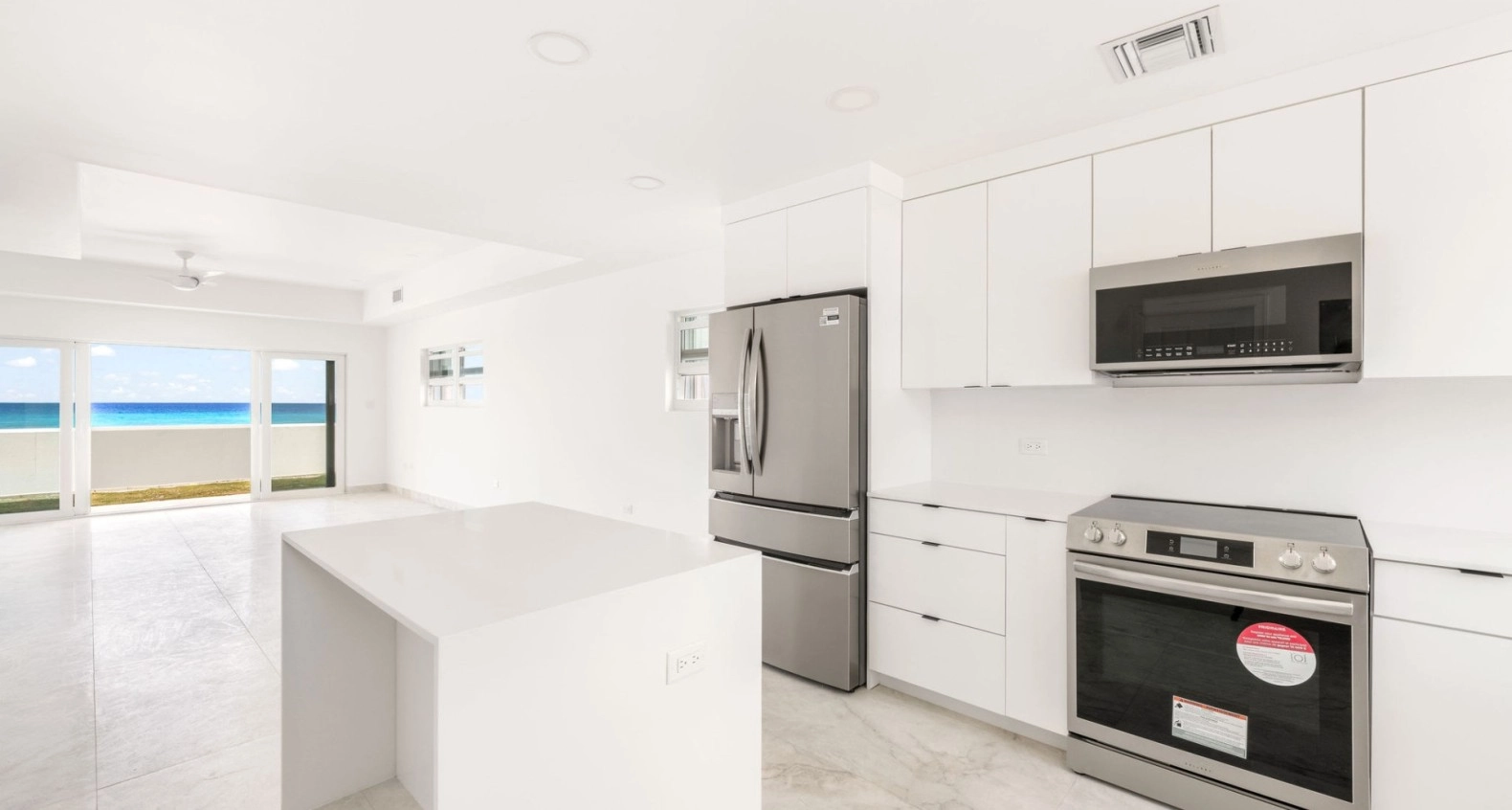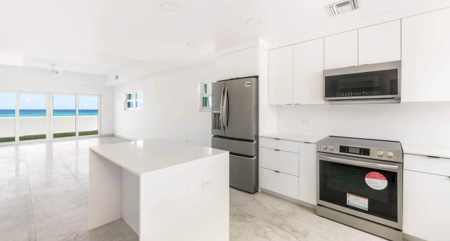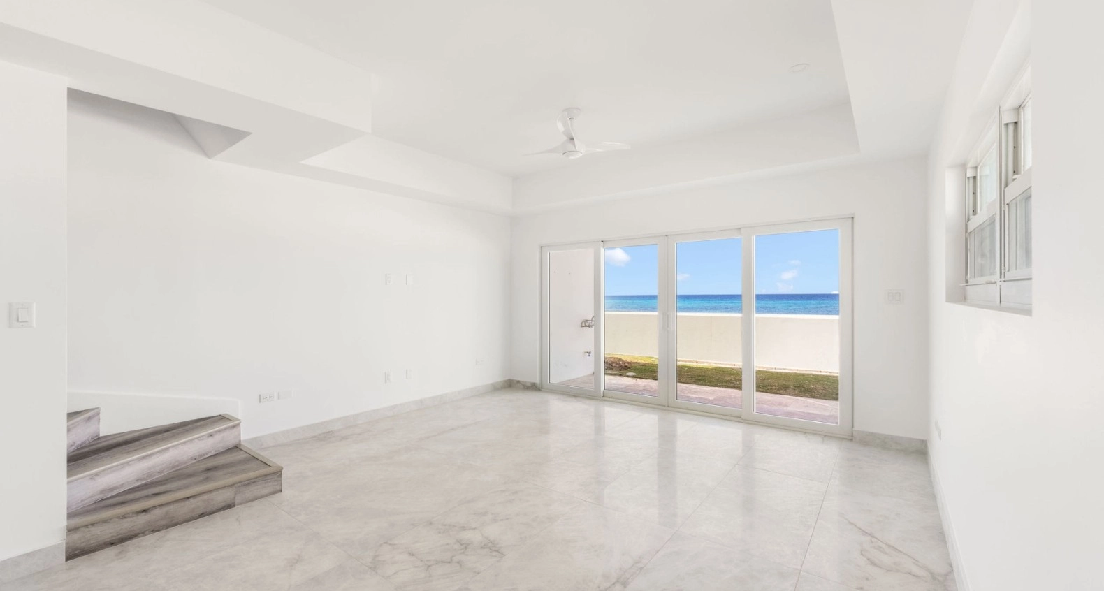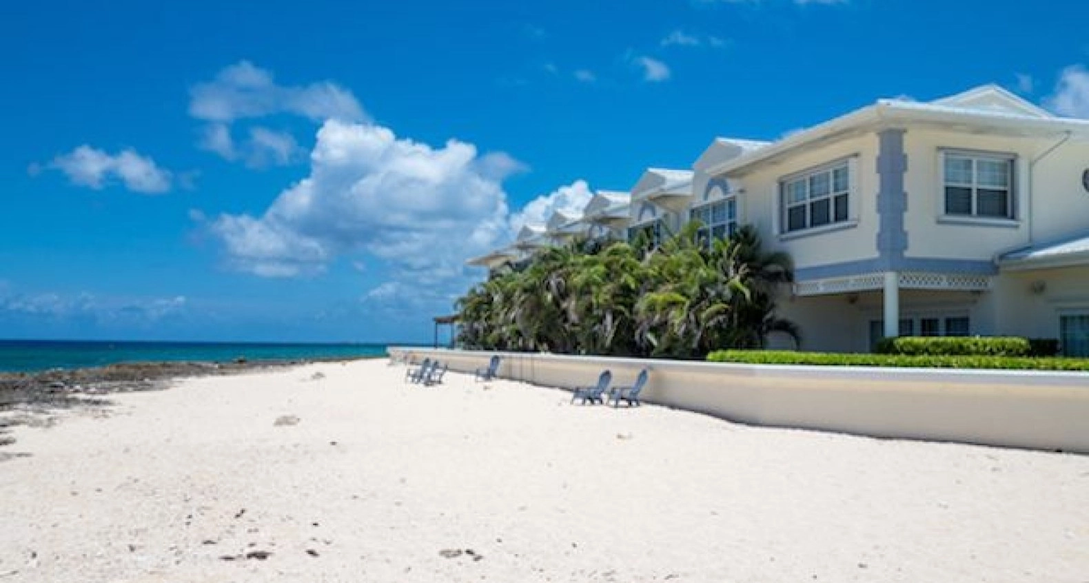 Newly renovated with brand new kitchen, appliances, new tiled floors and brand new hurricane rated doors and windows. A bright and spacious 2 bed, 2.5 bath corner unit in South Sound close to schools, George Town and Grand Harbour. Open plan living room, kitchen, dining area, all leading to a private outdoor covered patio, direct ocean front with stunning ocean and beach views and a separate garden area. Upstairs are two large bedrooms, both with en suite bathrooms and built in large closets. This end unit comes with lots of extra windows to give amazing natural light in every room, totally brand new AC system throughout including all duct work, new washer and new dryer. Comes with allocated covered parking spot.