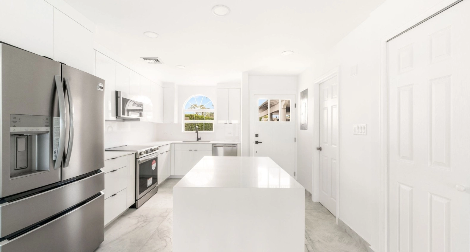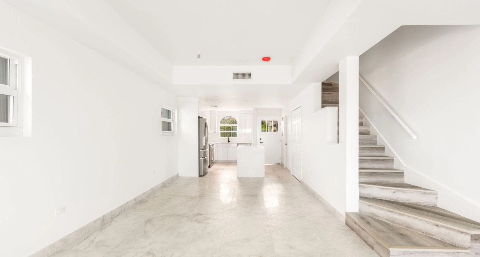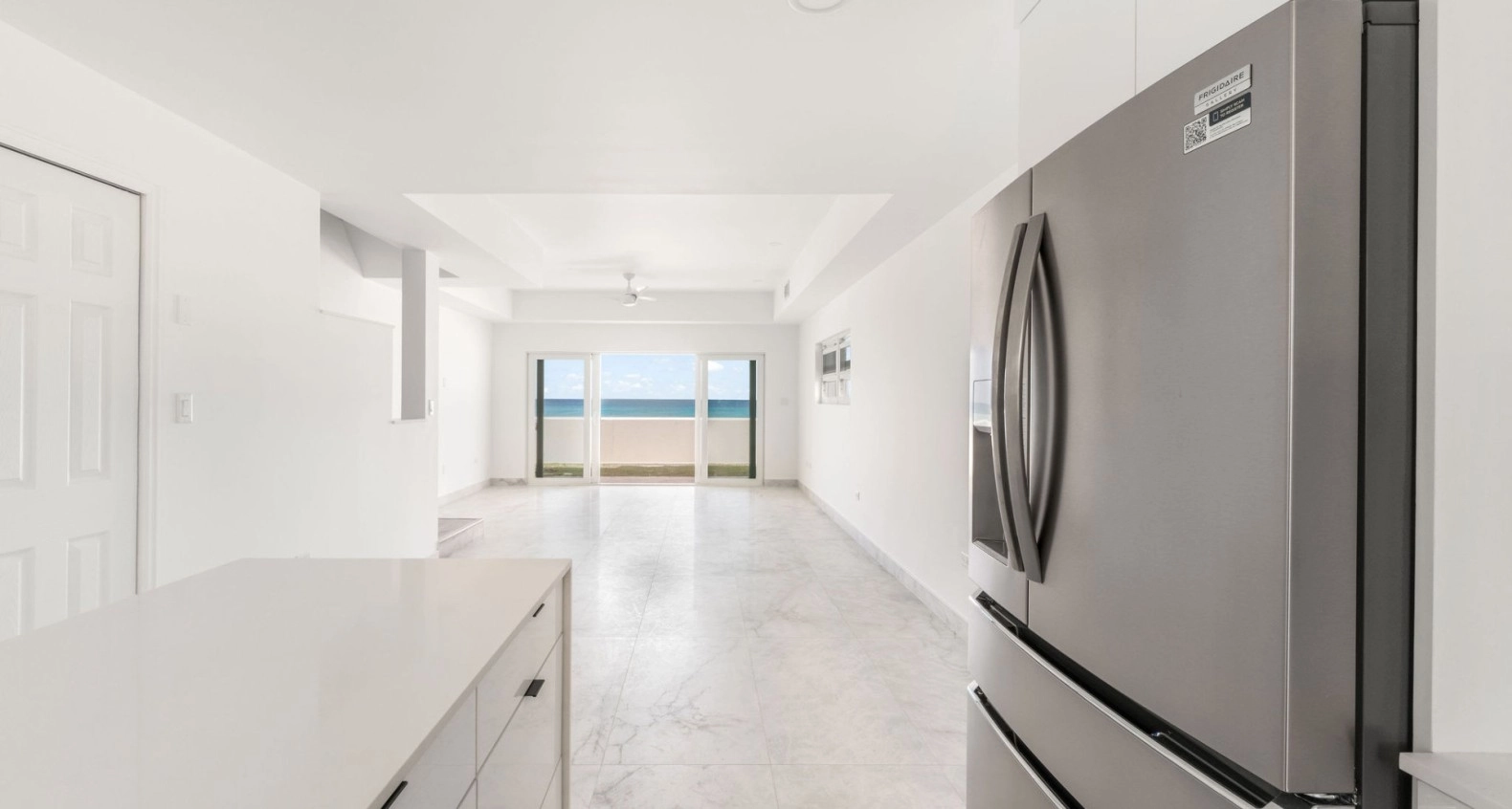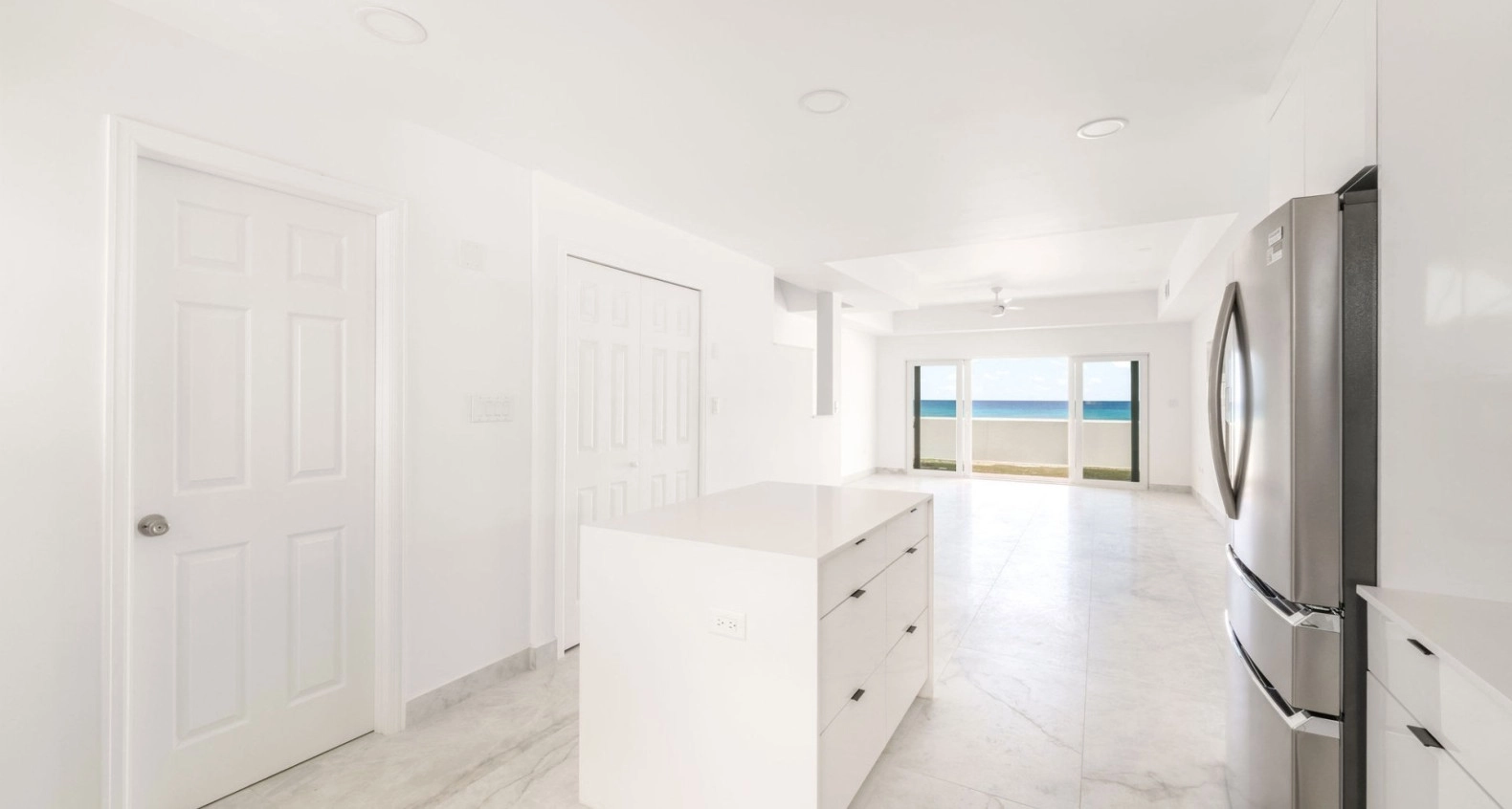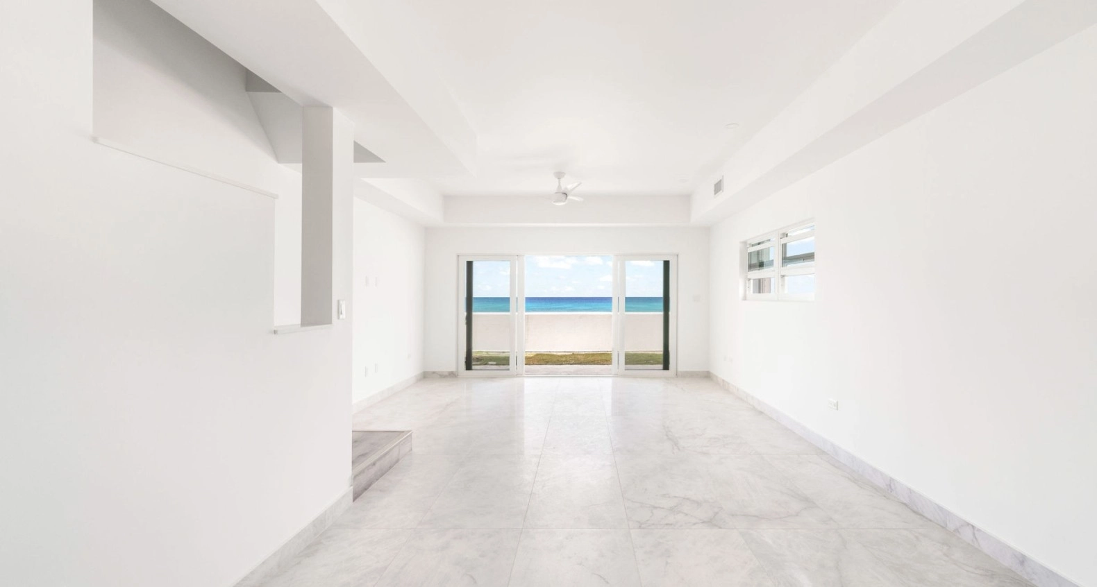 Newly renovated with brand new kitchen, appliances, new tiled floors and brand new hurricane rated doors and windows. A bright and spacious 2 bed, 2.5 bath corner unit in South Sound close to schools, George Town and Grand Harbour. Open plan living room, kitchen, dining area, all leading to a private outdoor covered patio, direct ocean front with stunning ocean and beach views and a separate garden area. Upstairs are two large bedrooms, both with en suite bathrooms and built in large closets. This end unit comes with lots of extra windows to give amazing natural light in every room, totally brand new AC system throughout including all duct work, new washer and new dryer. Comes with allocated covered parking spot.