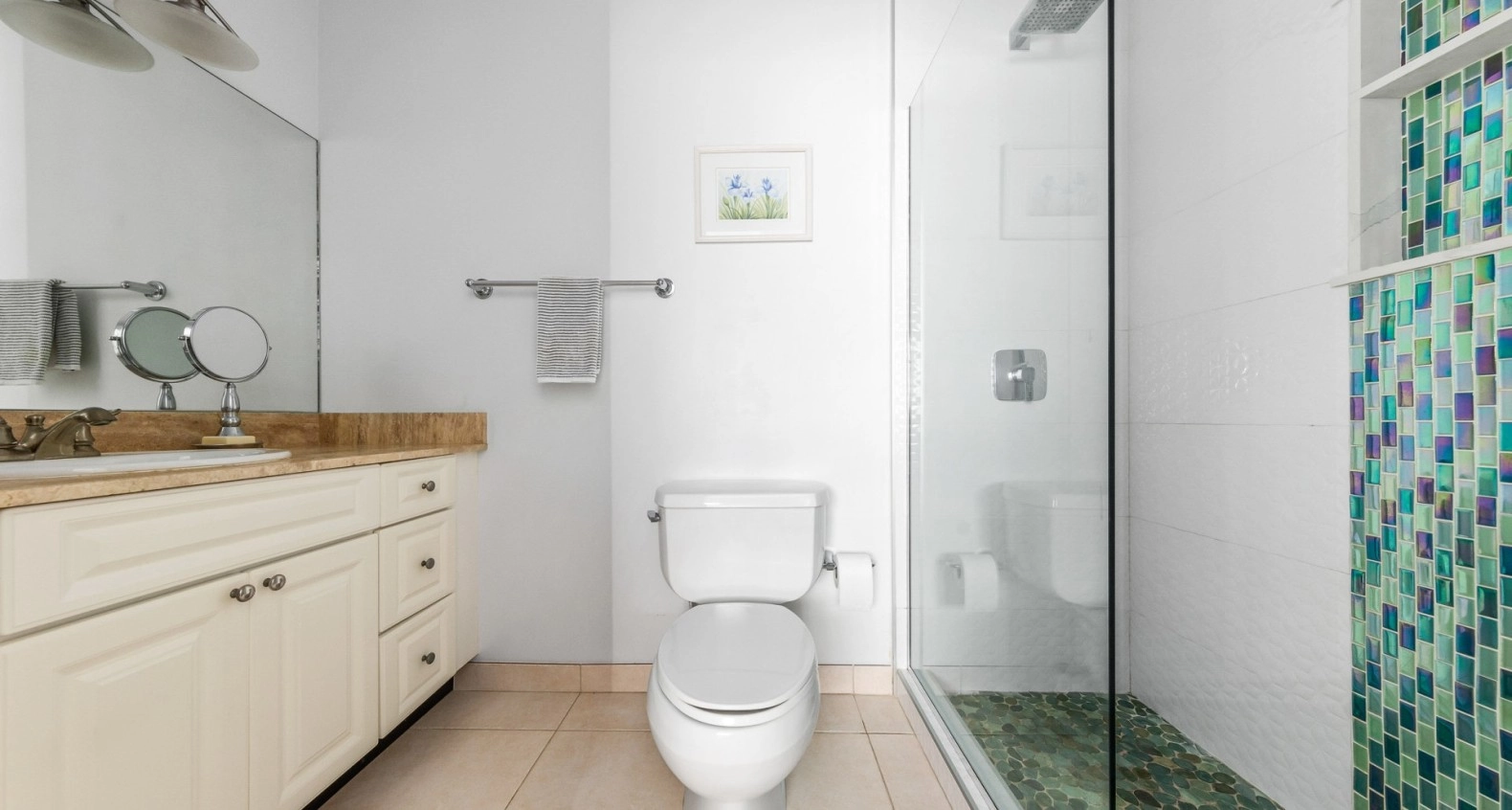 Improvements to the unit include two remodeled bathrooms, wood-look tiled stairs, custom closet shelving, and an expanded concrete patio. The kitchen features a reverse osmosis drinking water system and a tankless water heater with filtration- freeing up additional storage under the stairs. The roof is also insulated and has additional storage space in the attic with lighting in place.