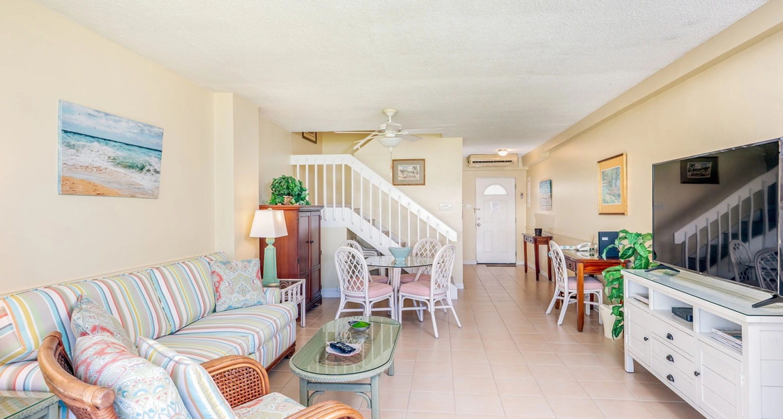 ONLY RESIDENCE FOR SALE AT HARBOUR HEIGHTS! Incredible value for this large, top floor, 2 level residence located on the quiet side of the property. Priced to fall into the 7.5% Stamp Duty range and not the 10% range. Featuring an oversized balcony with gorgeous beach views across a vast courtyard with manicured landscaping and out to the beachfront pool and Caribbean Sea. Rooms are more than ample in size with high ceilings throughout and lots of natural light. Very well maintained and kept. Nicely furnished and decorated in a popular Caribbean style that is well suited for this residence and location. The living room and dining room, as well as the master bedroom all have great views of the beach and Sea. This property boasts of a perfect stretch of wide and deep beach frontage. Enjoy the unique privacy and tranquillity of this low-density property with easy walking distance to restaurants, shops, hotels, and other conveniences. Ideal for the owner’s personal use and/or as a rental income investment with the potential for future redevelopment. Harbour Heights is a highly sought-after property, so best to move quickly on this one, as prices continue to escalate in prime locations like this along Seven Mile Beach.