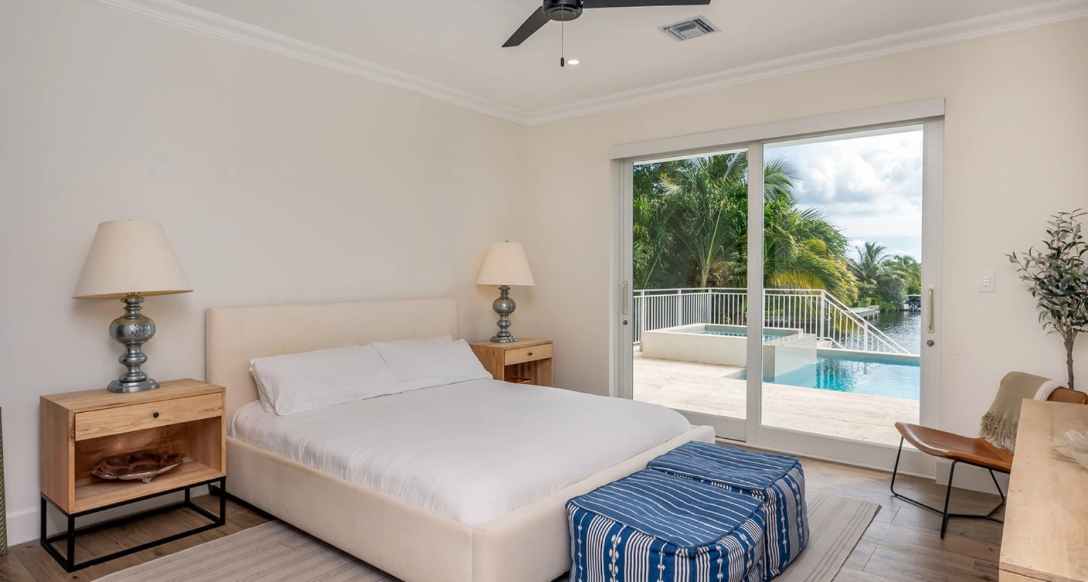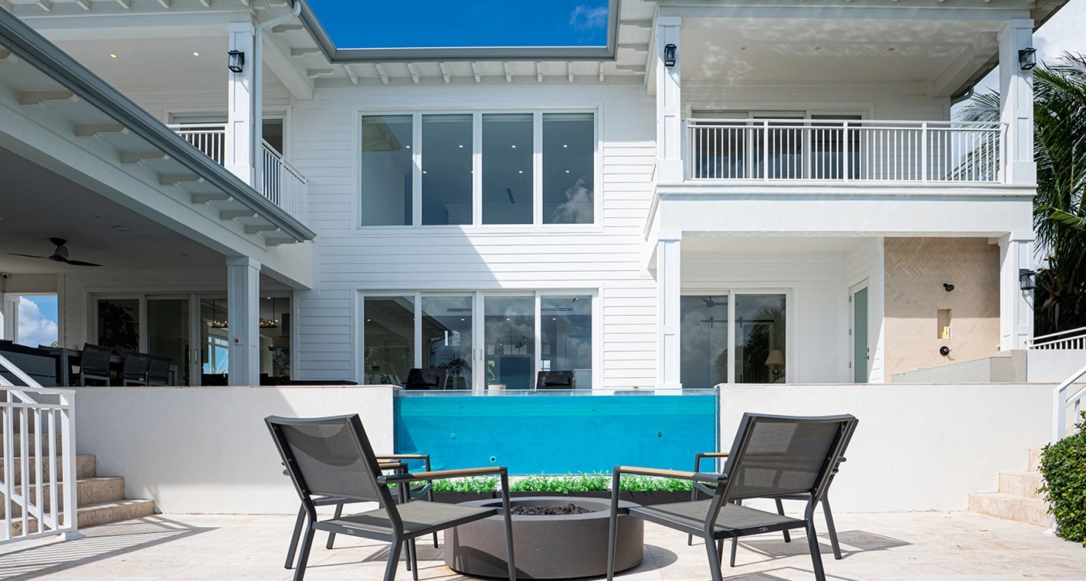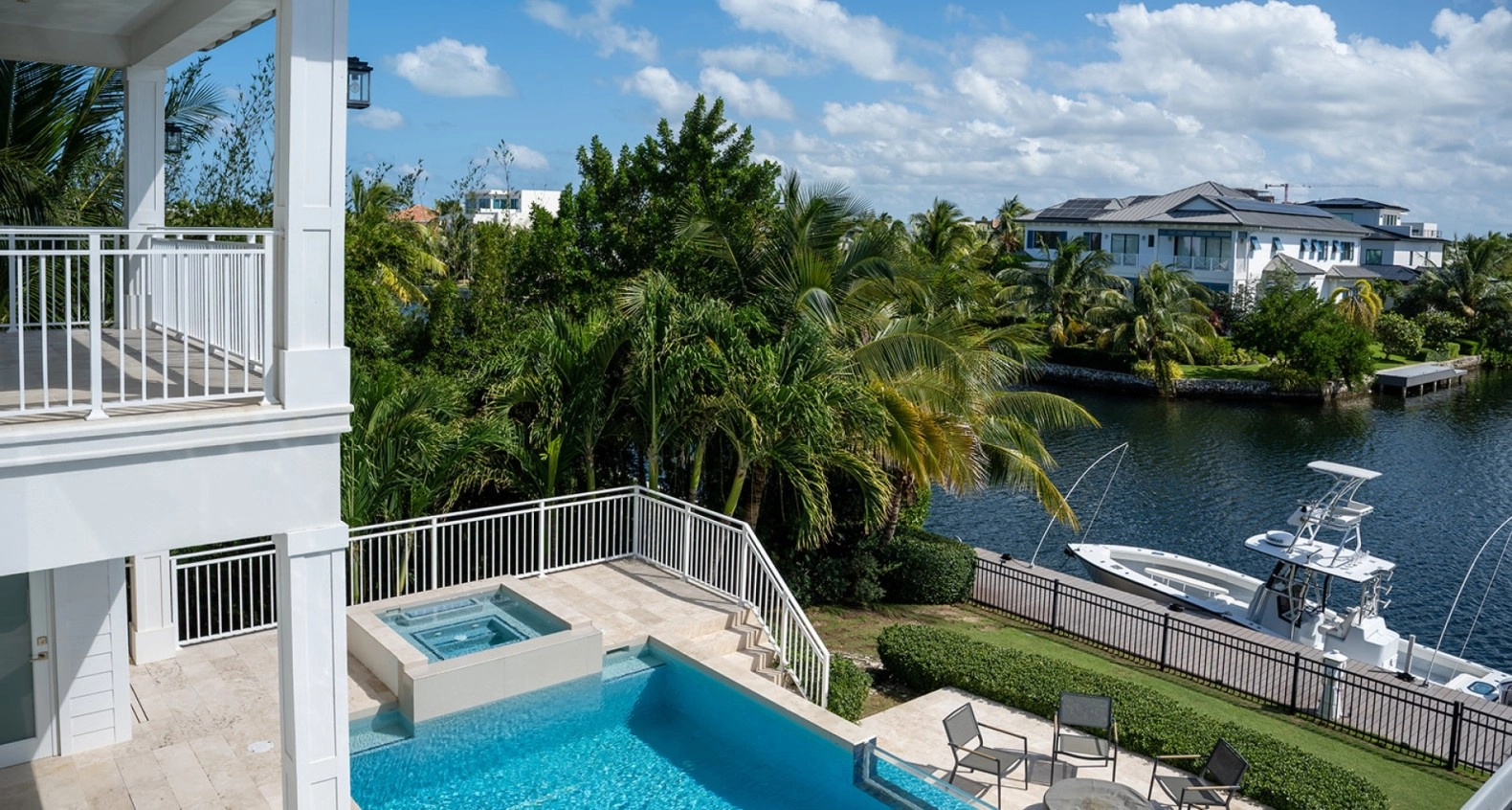 Each of the five bedrooms is a sanctuary of peace, with ample space, elegant finishes, and ensuite bathrooms that provide a spa-like experience including steam showers. The master suite is particularly impressive, featuring a private balcony that overlooks the water, perfect for enjoying morning coffee or sunset cocktails, and a double master en suite.
