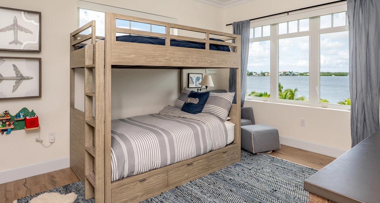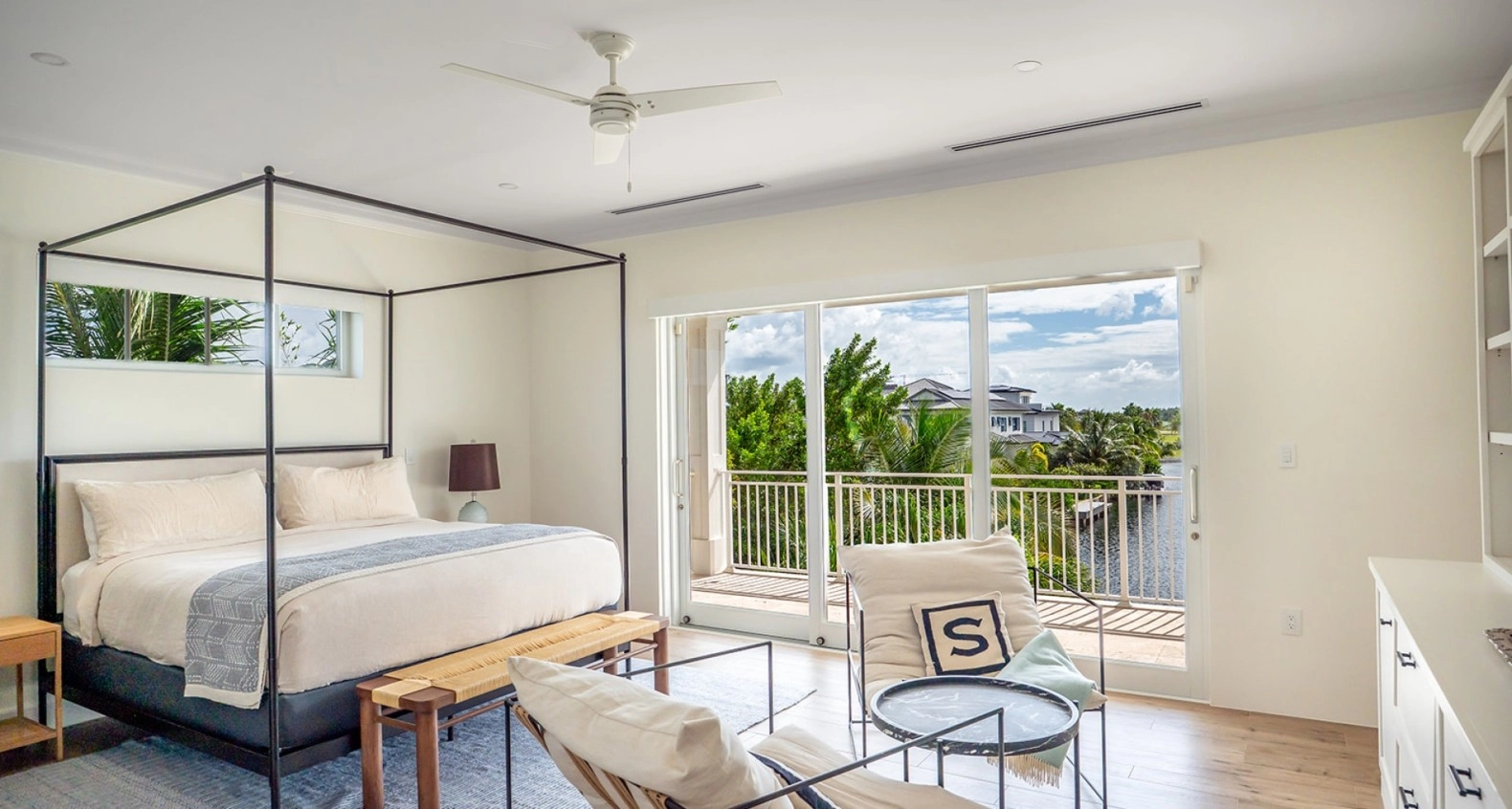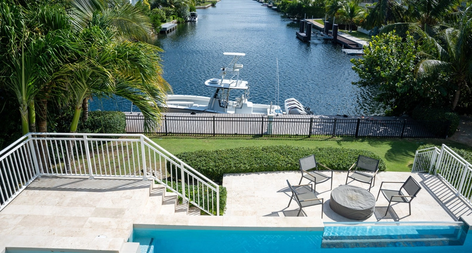 Each of the five bedrooms is a sanctuary of peace, with ample space, elegant finishes, and ensuite bathrooms that provide a spa-like experience including steam showers. The master suite is particularly impressive, featuring a private balcony that overlooks the water, perfect for enjoying morning coffee or sunset cocktails, and a double master en suite.