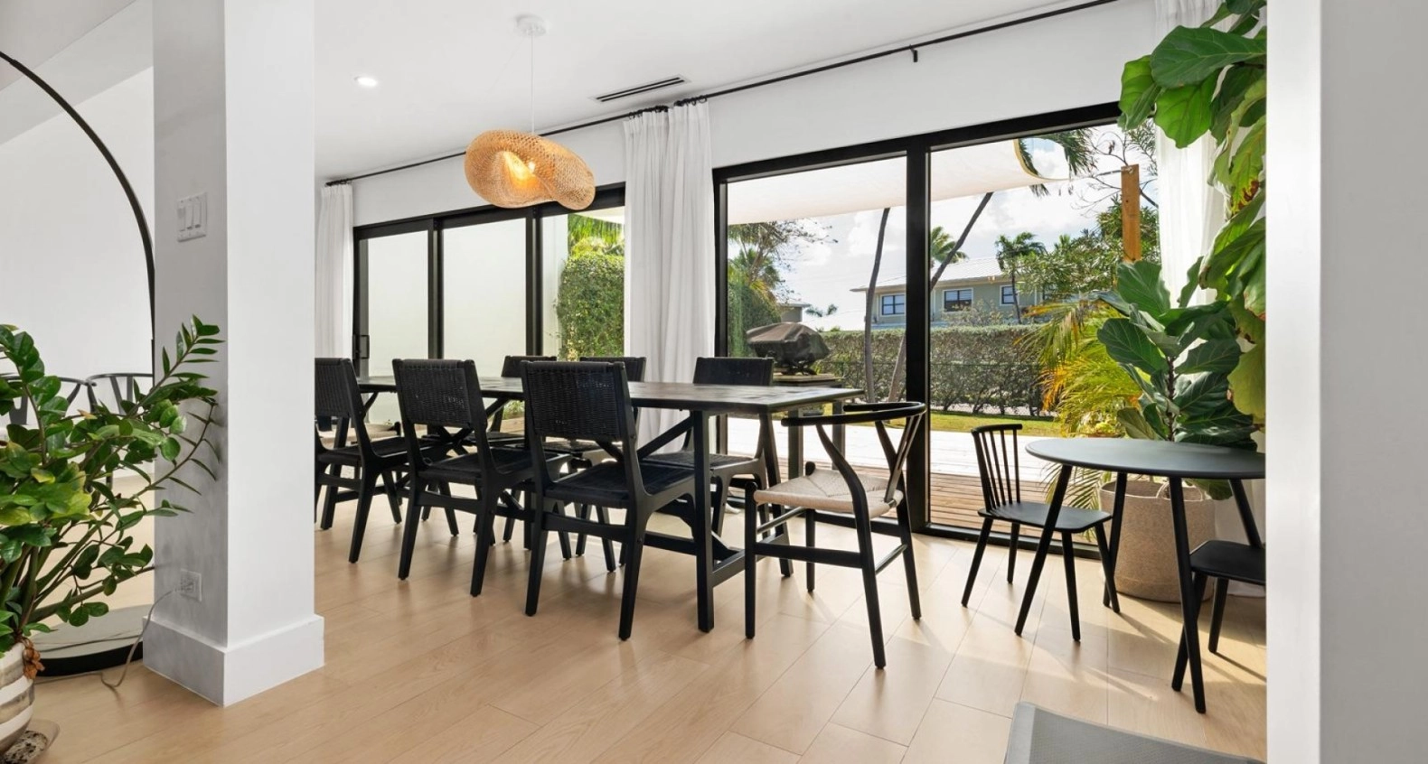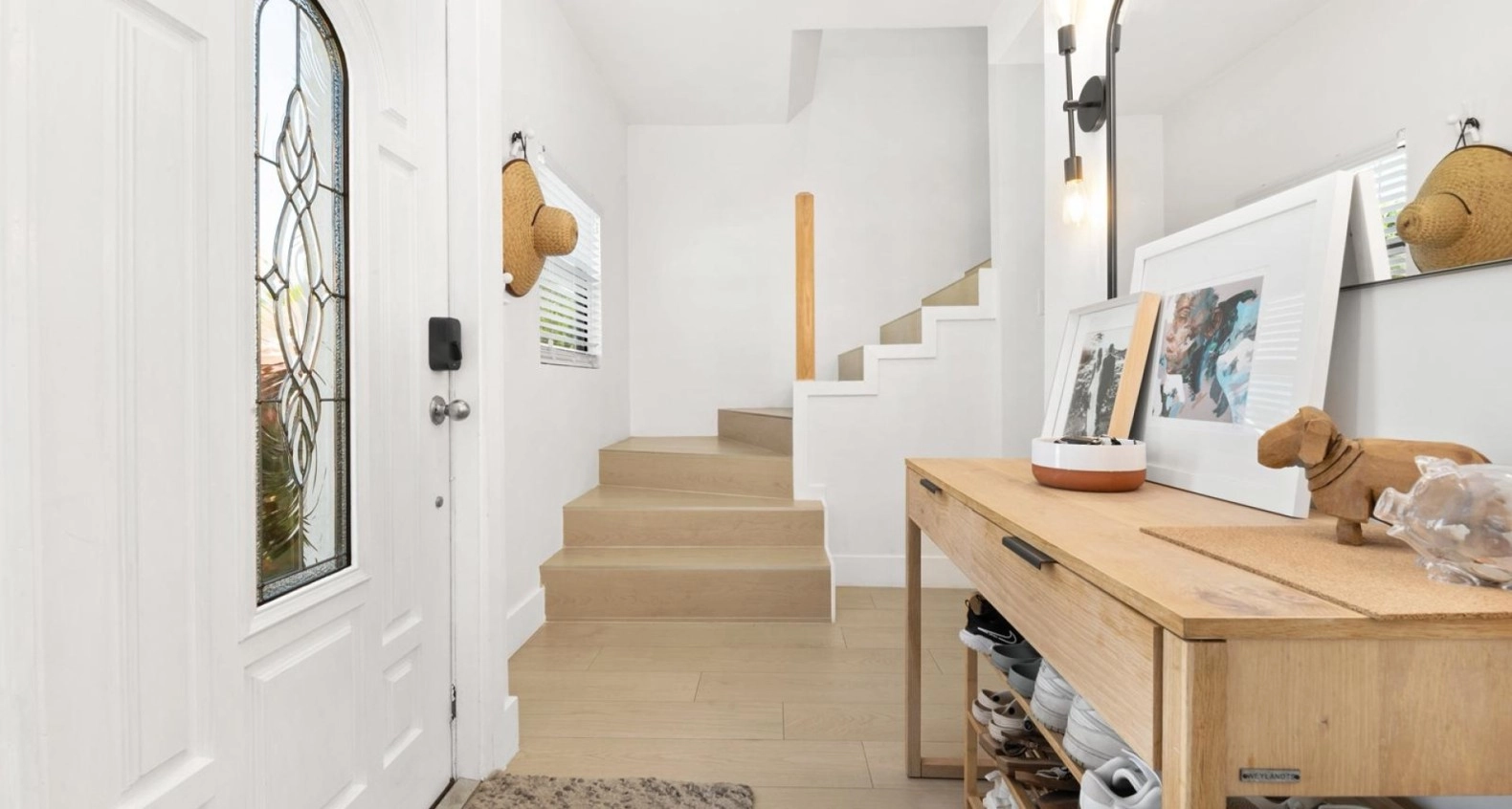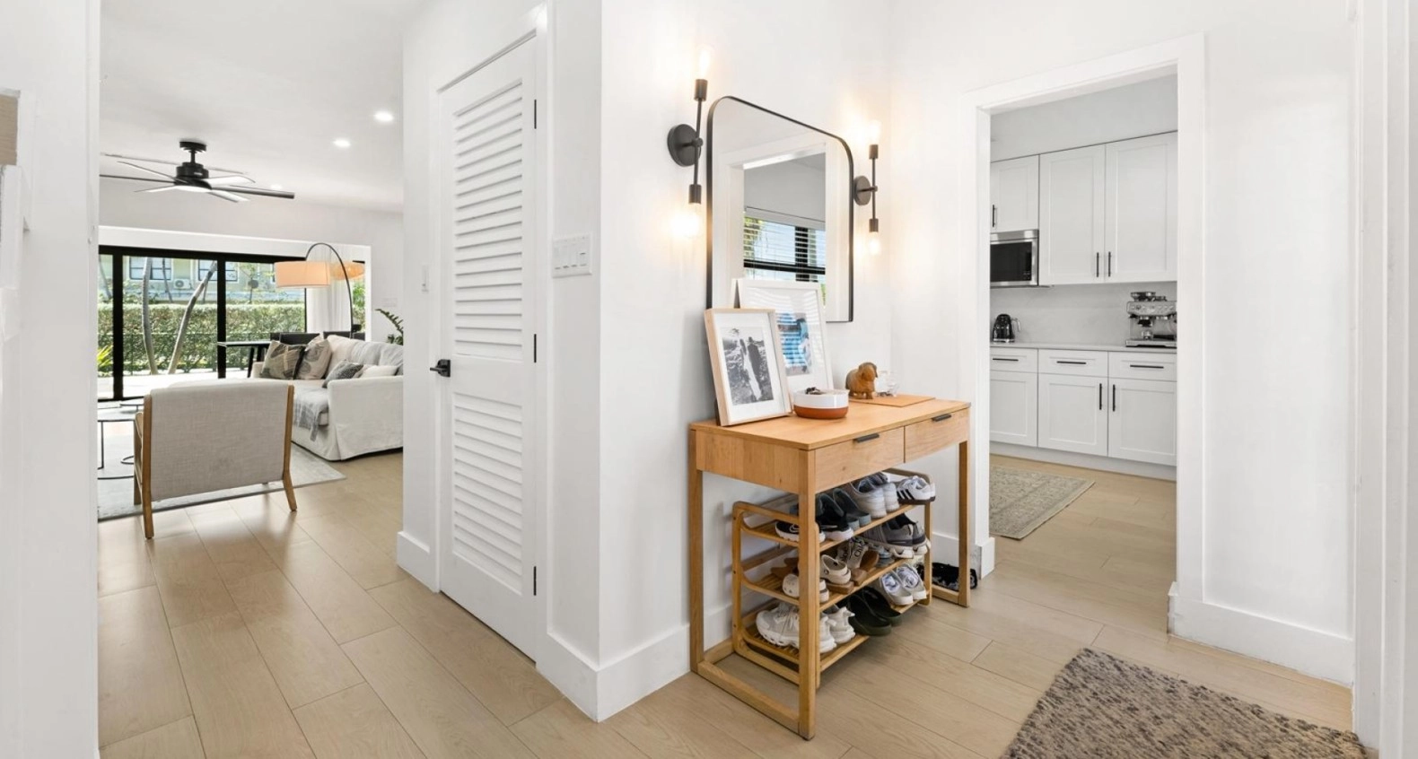 On the ground floor you are welcomed by a 2-way entry foyer, giving easy access into the kitchen or living room. The Kitchen has been doubled in size for plenty of prep space and storage, while being accented by brand new stainless steel appliances. What once was a small patio has been opened up to be included in the living / dining space, adding to the useable square footage, while remaining protected by hurricane impact windows and doors which were installed throughout in 2022.