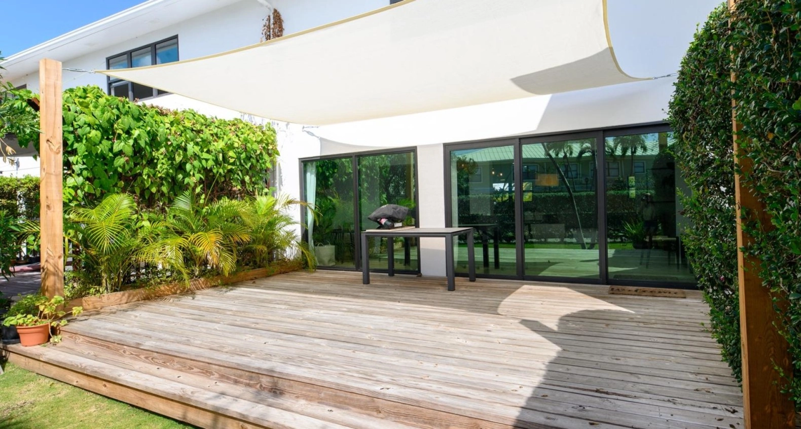 Outside you will find a brand new deck, canopied by a sun shade sail, perfect for Barbecues with friends and family. The unit is located just steps away from a shared pool virtually hidden in plain sight.