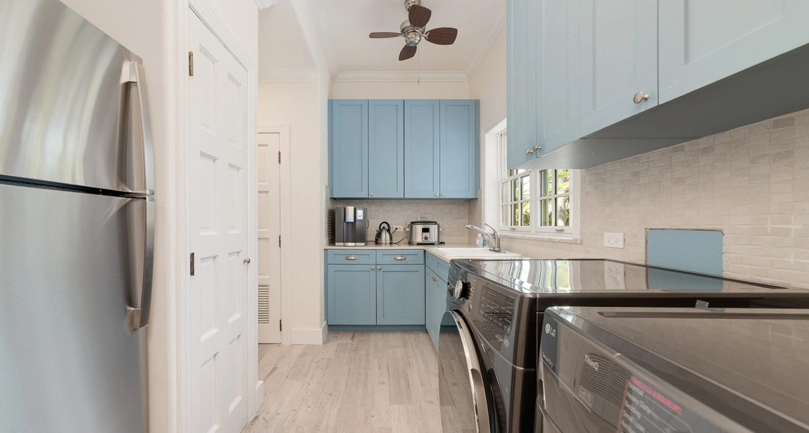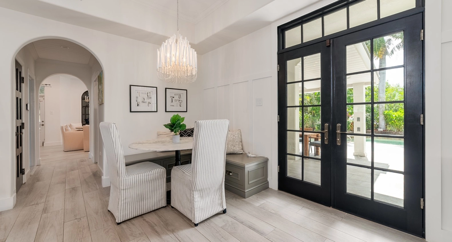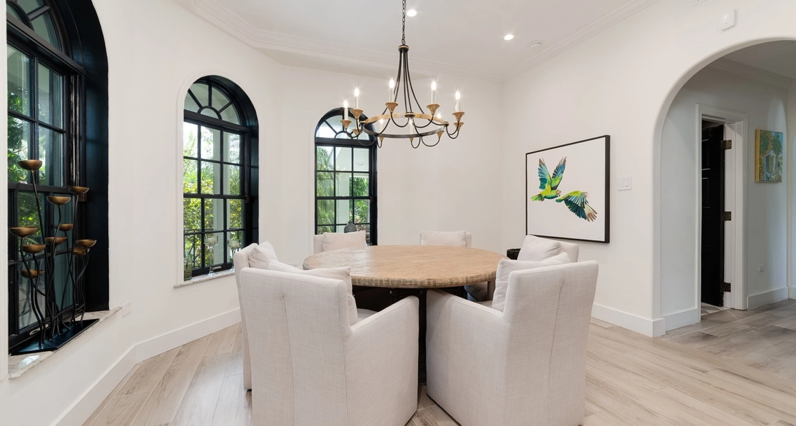 Freshly renovated, and yet still with room for personalization, the home radiates a calming and laid-back island vibe. Earthy tones, graceful archways, and an abundance of natural light flow throughout the space, welcoming you in from the moment you pass through the bold arched entryway. The open layout leads you through a generous foyer into the airy living room, an elegant kitchen with cozy breakfast nook with top-of-the-line Fisher & Paykel appliances, a five-burner gas range and griddle, and a sit-up breakfast bar perfect for morning coffee. Tucked-away is a formal dining room that’s perfect for intimate dinners or Sunday lunches.