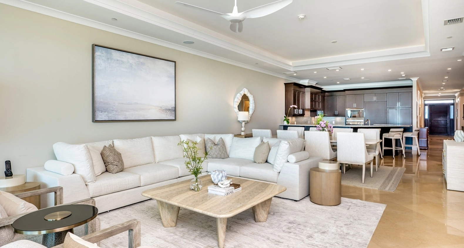 Recently re-furnished and professionally decorated in soothing, neutral tones, the interior exudes an atmosphere of elegance and relaxation. Sunsets here are nothing short of spectacular, and can be enjoyed year-round from the spacious, secluded balcony — an ideal setting for entertaining or unwinding in total comfort.