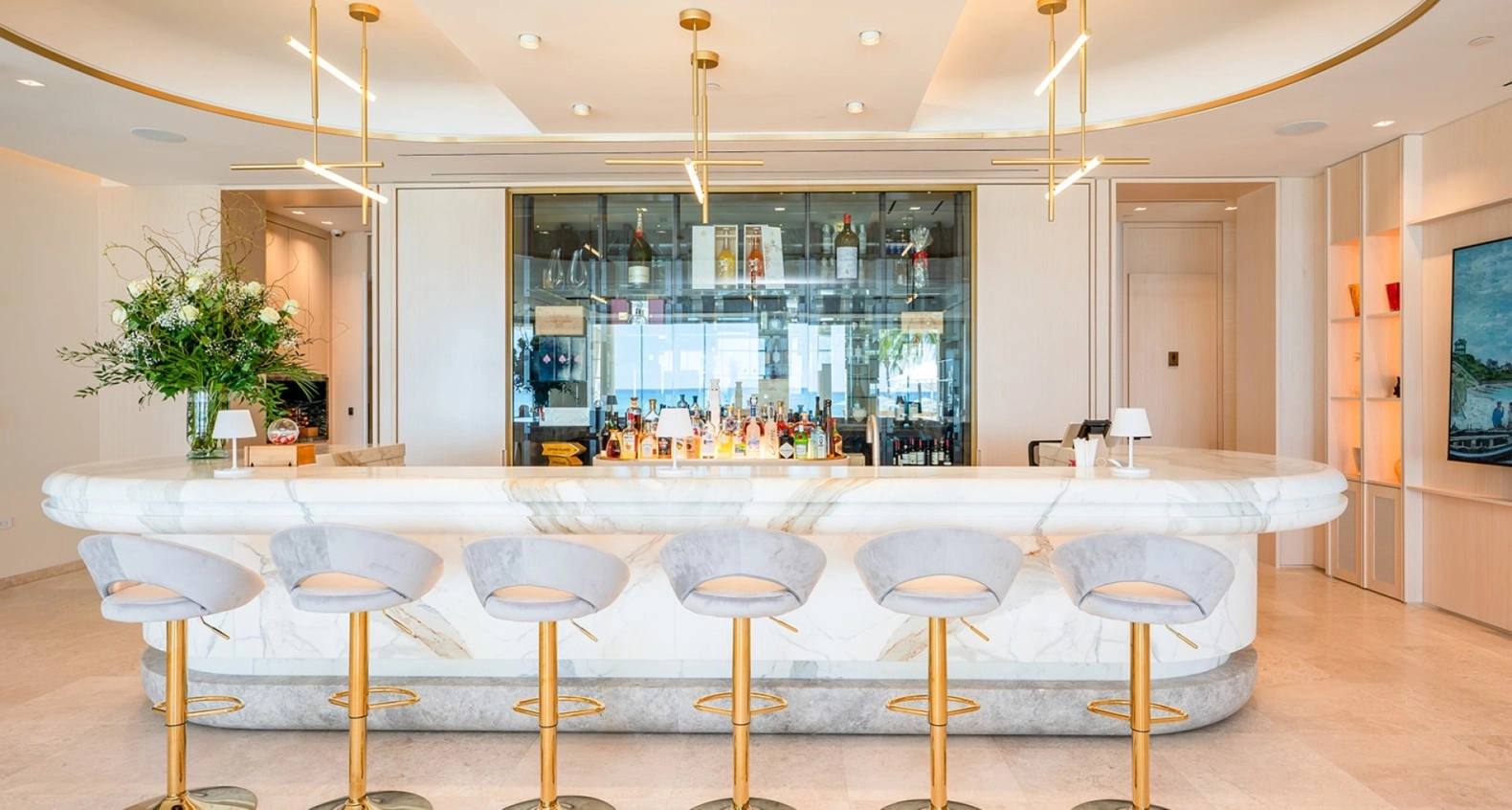 - Newly redesigned beachfront owner’s lounge with staffed bar