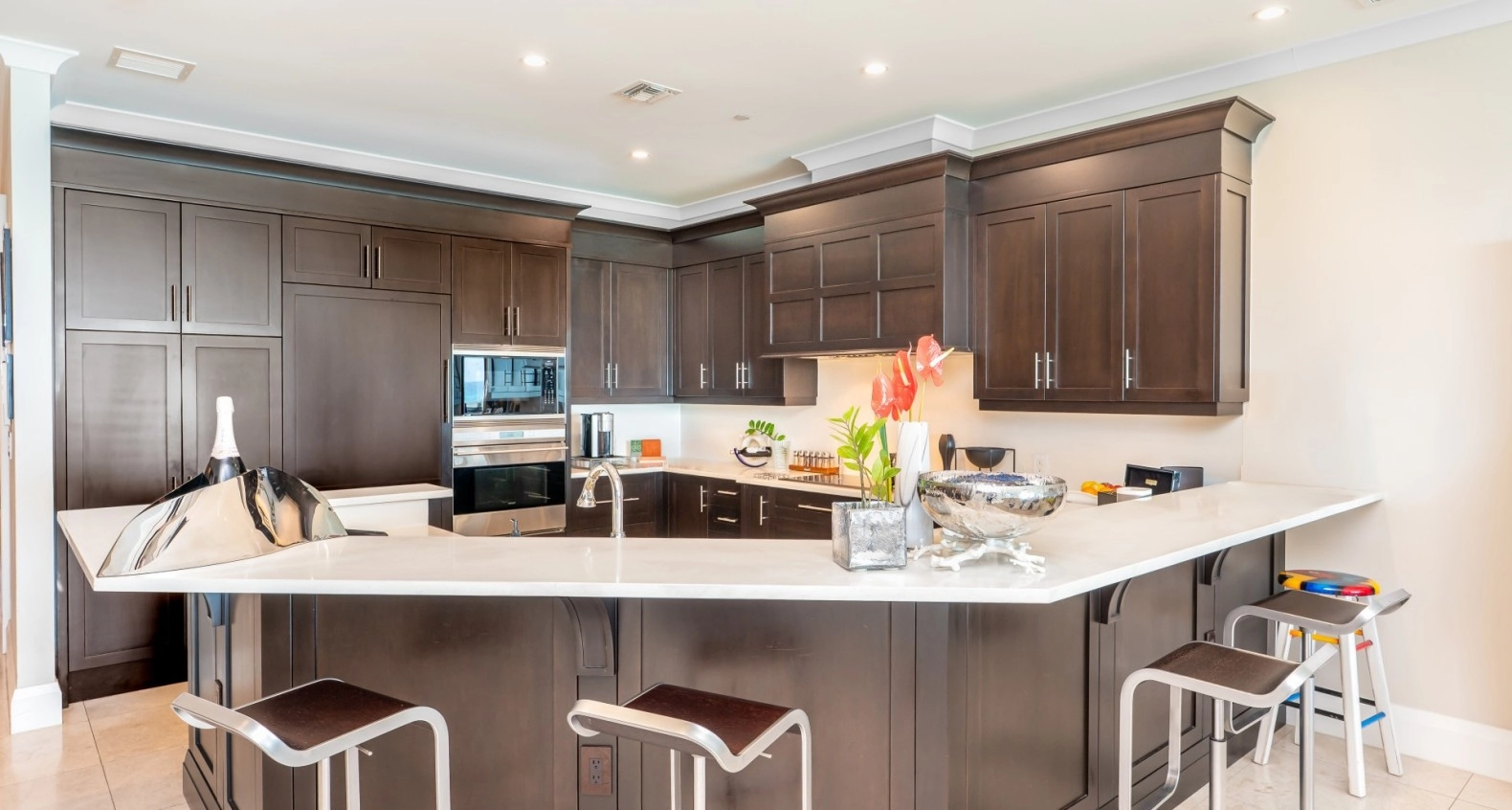 Step onto the expansive balcony from the master suite or living area and savour year-round sunsets. Laminated glass panels, versus railings, preserve the view creating a seamless connection with the horizon.