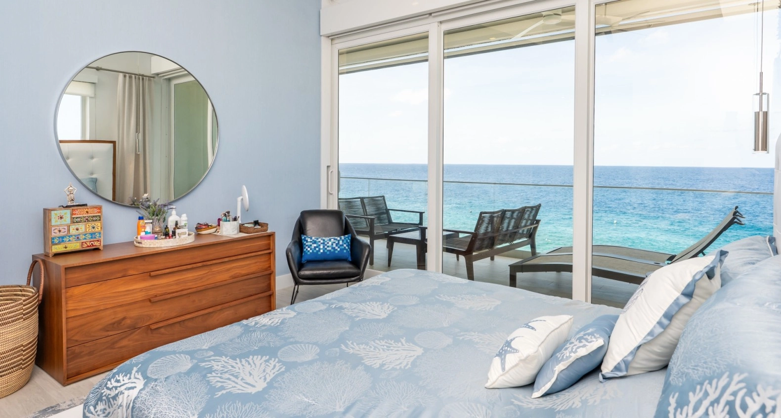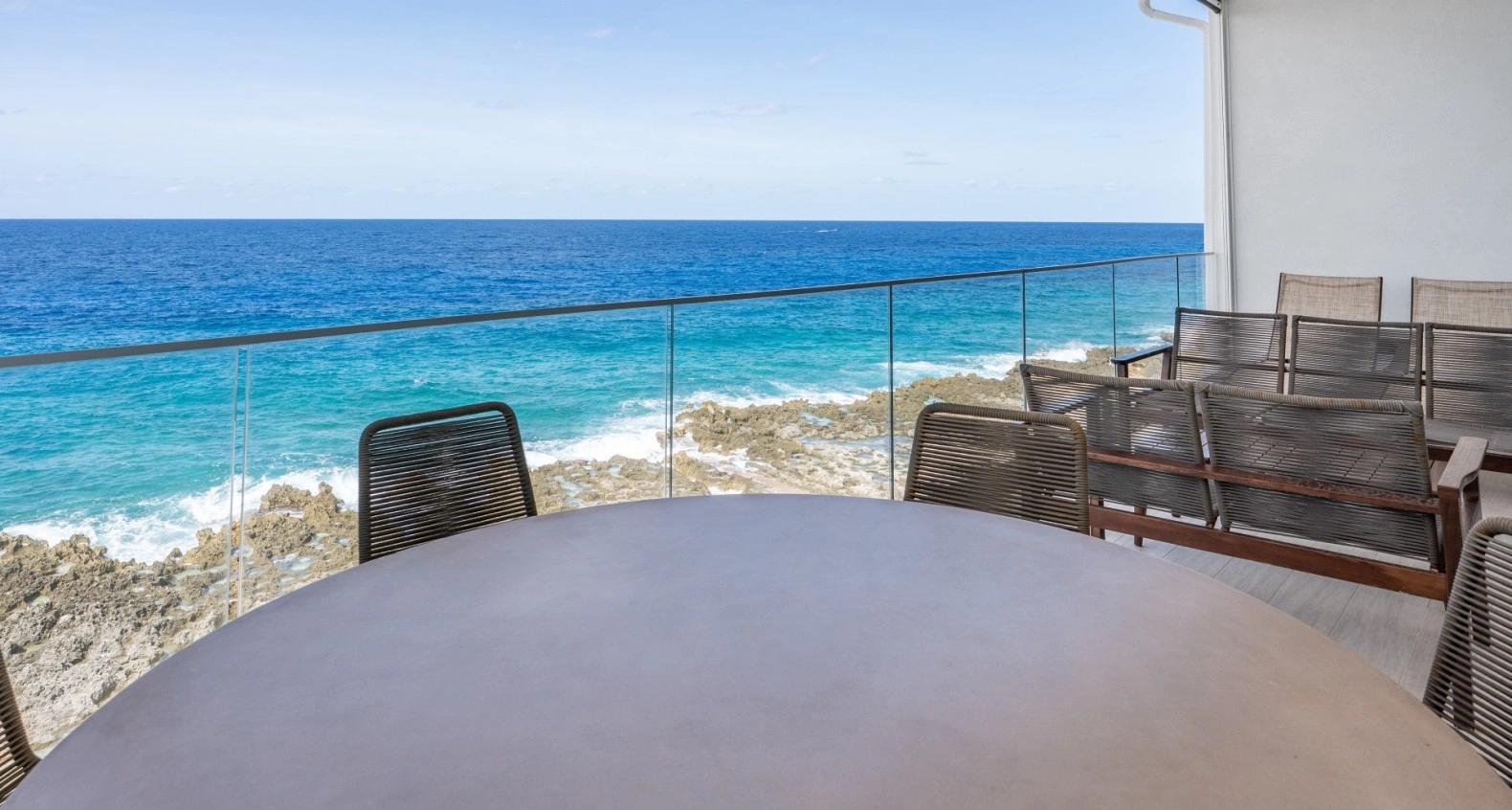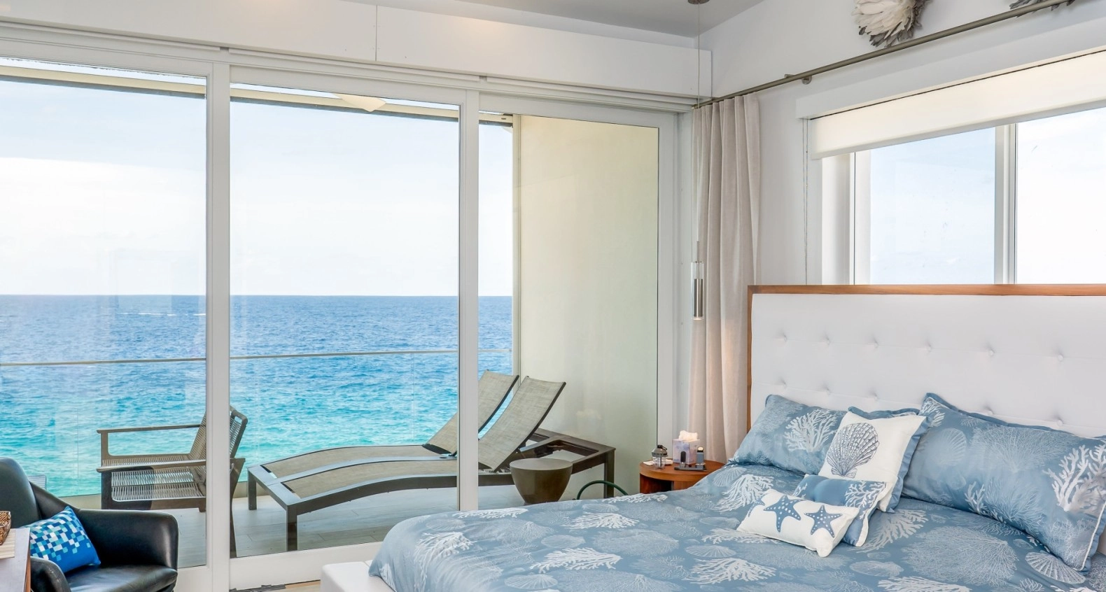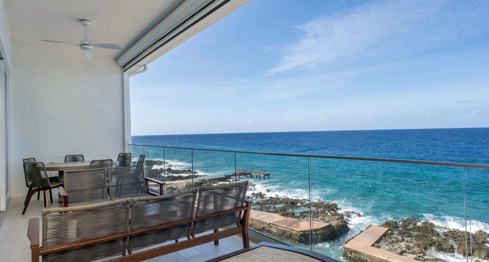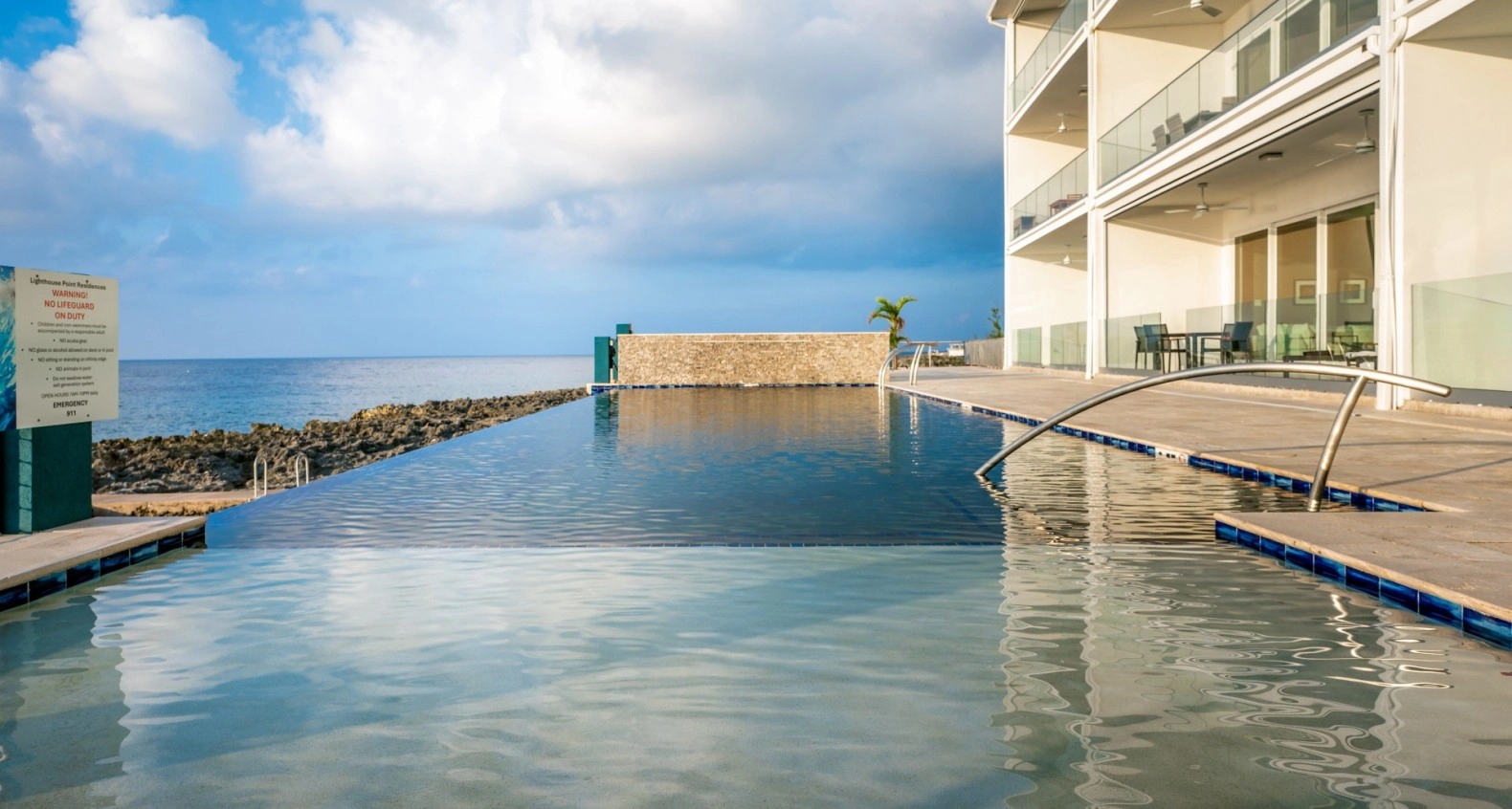 This is one of those unique, top floor corner Penthouse residences that rarely become available and are so hard to find. It is situated in the most prime location with absolutely gorgeous sunsets and unobstructed Seafront views. Featuring high ceilings vaulted to 14 feet with 9 foot high sliding glass doors out to the terrace. The living room and master bedroom are both overlook the Caribbean Sea with the incredible views that being at this high level has to offer. There is even a back terrace for one of the guest bedrooms with inland views and early morning sunrises to enjoy. Lots of windows and glass doors to provide an abundance of natural light throughout. This residence has been meticulously maintained and kept in like-new condition with a contemporary, high quality interior. Lighthouse Point Residences is a totally green designed building abounding with solar, energy efficiencies, and renewable energy features – your CUC electric bill will be very low. There is an elevator for easy access, Seafront swimming pool with large deck area situated 14 feet above Sea level, protected Sea pool/cove accessible for diving/snorkeling, BBQ area, separate storage locker, and diving center with restaurant right next door. This area of Northwest Point is one of the most up and coming locations in Grand Cayman with new developments, restaurants, and other sought after facilities creating more and more value for this location. And, best of all, selling at a tremendous value!