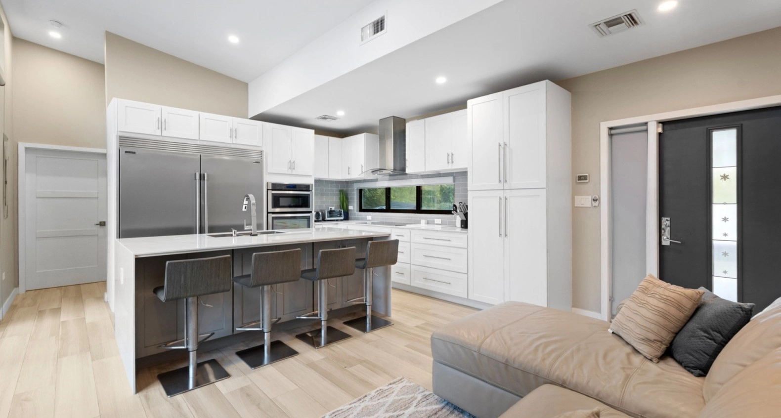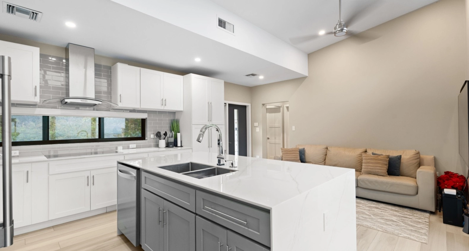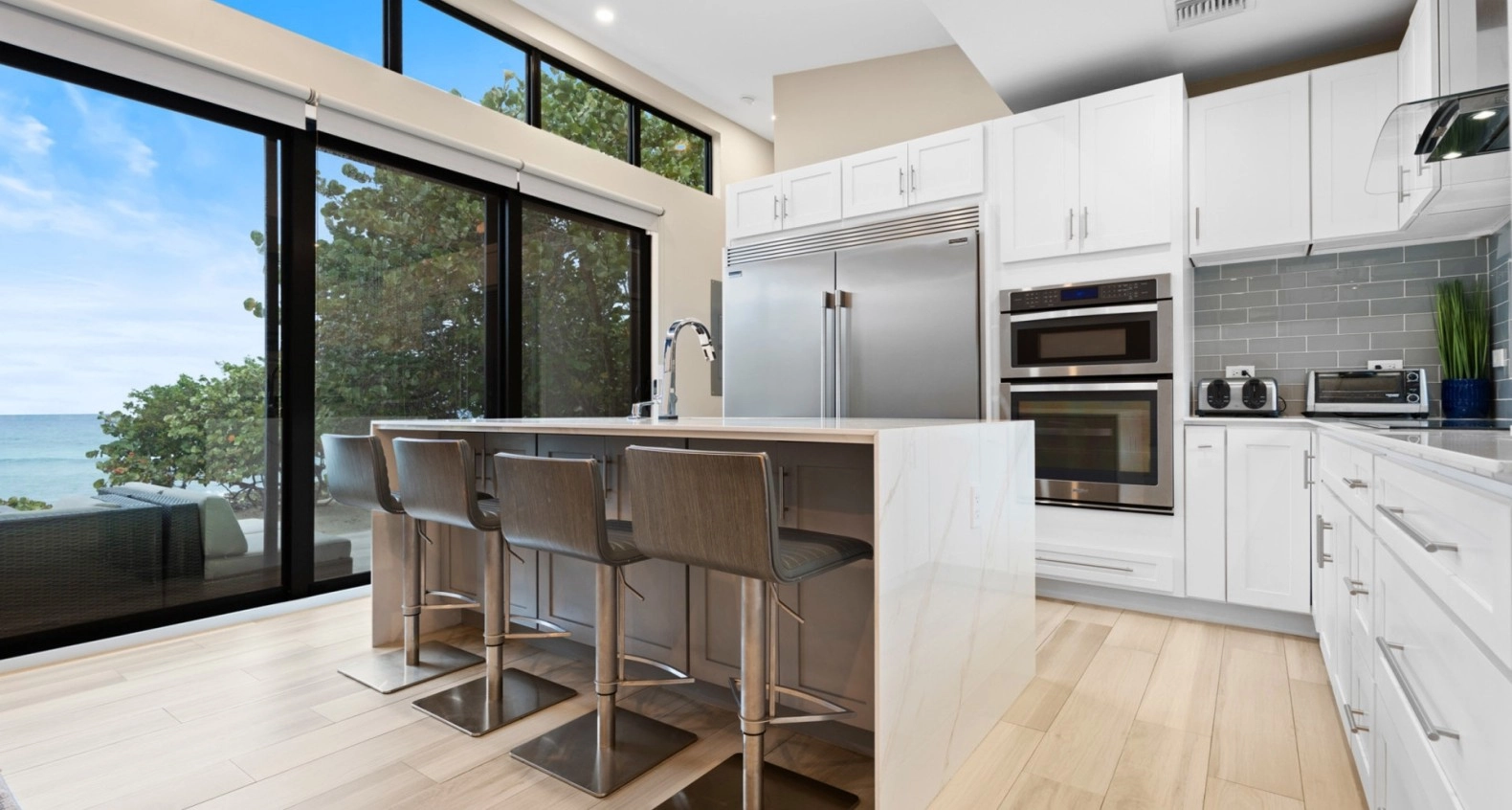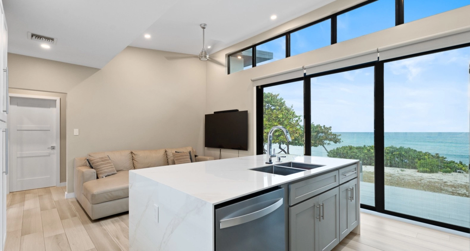 The guest house was constructed in 2019 with an emphasis on attention to detail, and modern style in mind. Spanning 1,014sq ft of interior space, with an additional 661sq ft of tiled concrete front and back patios, the 2 Bed 1.5 Bath home provides an indoor/outdoor living style with breathtaking views of the Caribbean Sea.
