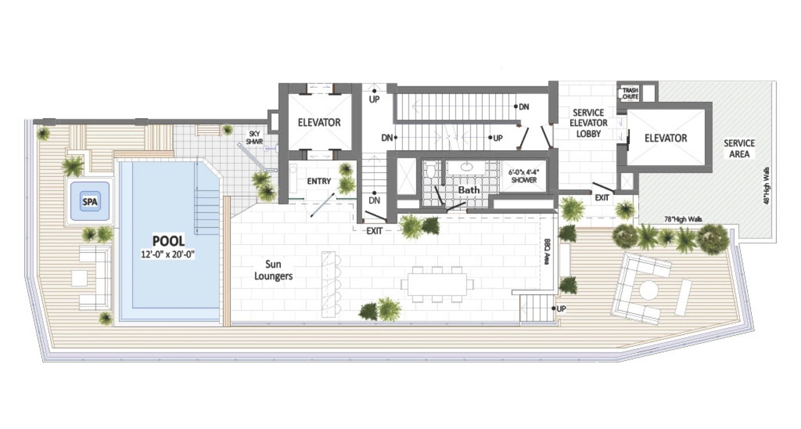 The Sky Decks are a world of their own with private elevator and 4.5ft deep infinity edge heated pool and spa, multiple lounging areas, outdoor kitchen and bar and al fresco dining. This Sky Villa Penthouse expands this pure luxury with sky shower, fitness studio and massage suite both with spectacular sunrise views of the North Sound. This enhances private space expands your living area to an unprecedented level on Seven Mile Beach and creates an unmatched opportunity for investment return.