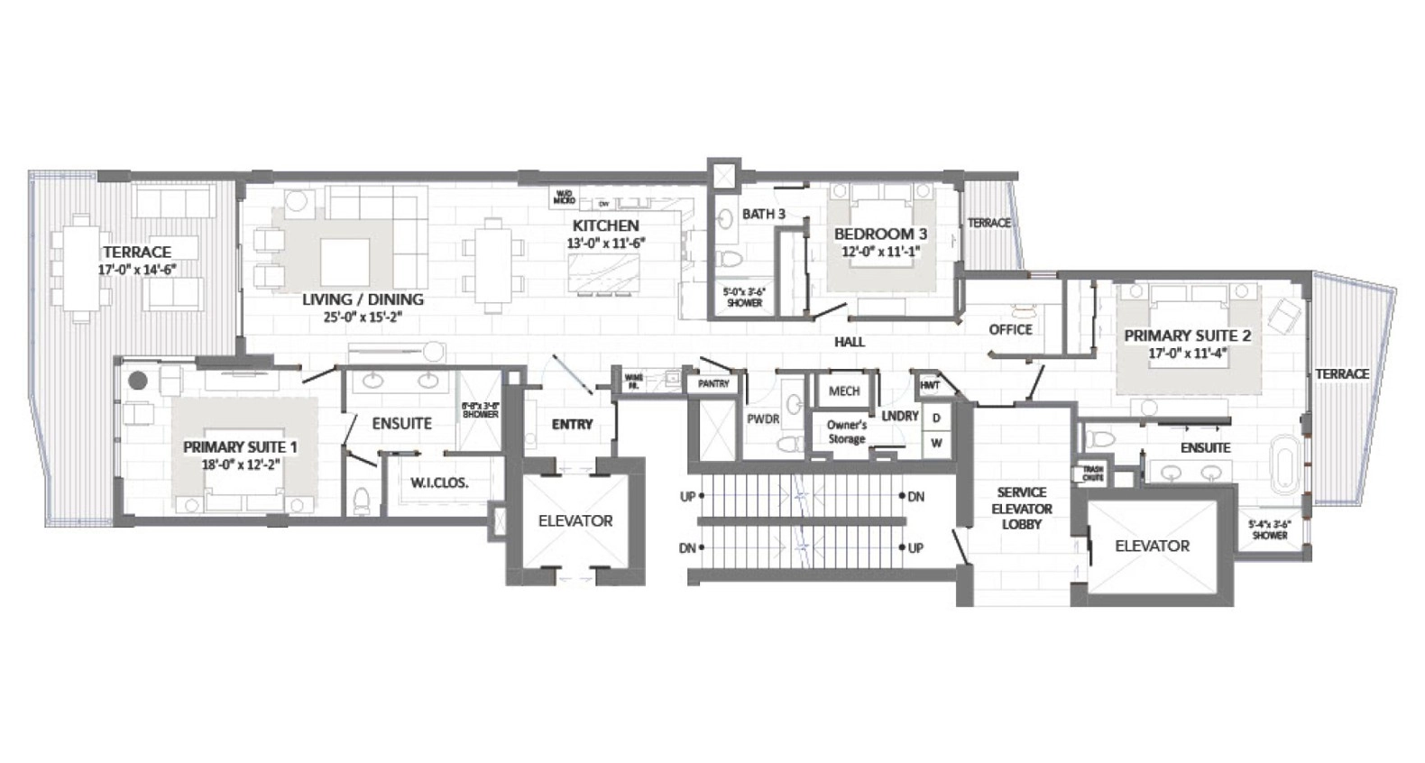 The interior design has been developed by Butler Group’s award-winning partner company, Design Studio Interiors. All Sky Villa Penthouses feature expansive floor to ceiling glass walls, high ceilings, superior tile and flooring options, top quality plumbing and appliance selections as well as bespoke millwork design for the kitchens, bathrooms, and amenity areas.