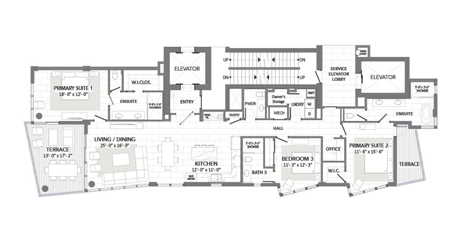 Aqua Bay will offer a daily rental program which owners can utilize while not in residence, making this building the newest and most luxurious daily rental destination in Grand Cayman. With 2,646 sq. ft. and featuring 3 bedrooms and 3.5 bathrooms, this villa features an open concept living/dining area and kitchen with wet bar, 2 Primary Bedrooms Suites each with luxurious spa bathrooms - one with access to a large terrace with stunning views of Seven Mile Beach and the other facing North Sound with a terrace to enjoy incredible sunrises and views to Rum Point and Cayman Kai, a powder room, a home office and laundry room. Additionally, by virtue of the central core design, you will enjoy a private elevator entryway to your villa.